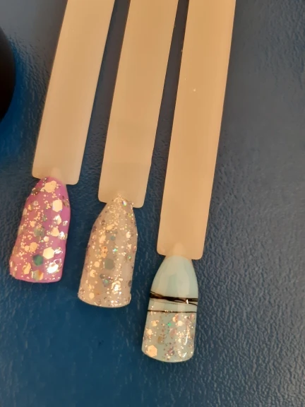 Все как в описании. Другие цвета ещё не выкрашивала, блёстки нанесены в два слоя.