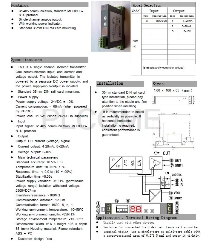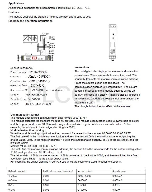 RS485 Modbus Slave to 4-20 мА 0-10 в 0-5 в аналоговый ток напряжение выход Модуль AO изоляционный преобразователь RS-485 Modbus RTU, DIN-рейка