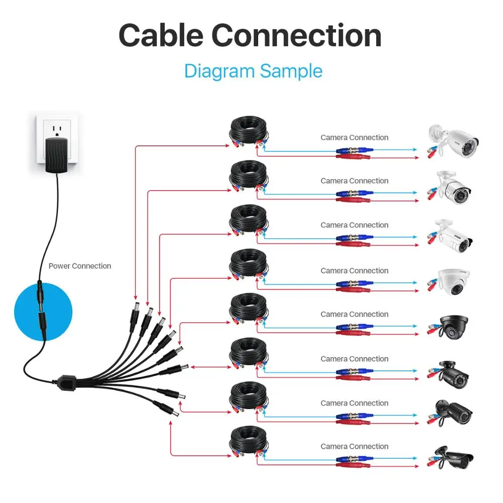 Разветвитель питания ZOSI DC от 1 до 4, 8, Кабель-адаптер для камеры видеонаблюдения, видеорегистратора