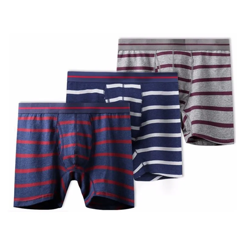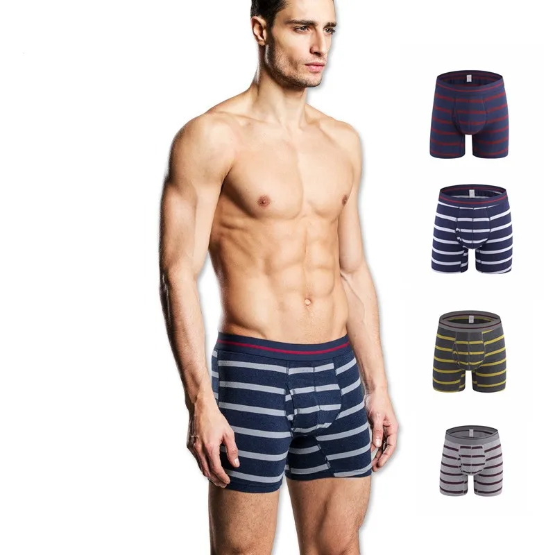 Модные мужские трусы-боксеры большого размера из хлопка и лайкры, Удлиненные мужские трусы в полоску с прямым углом