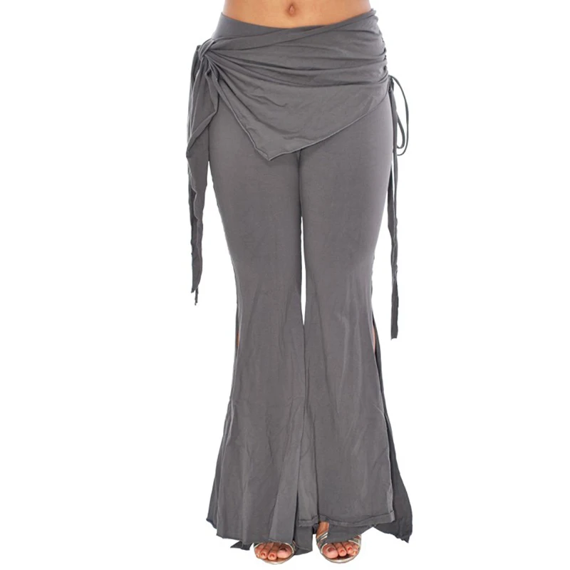 Племенной Fusion Высокая Талия расклешенные брюки практика штаны с Панель боковыми разрезами в готическом стиле шаровары для танца живота