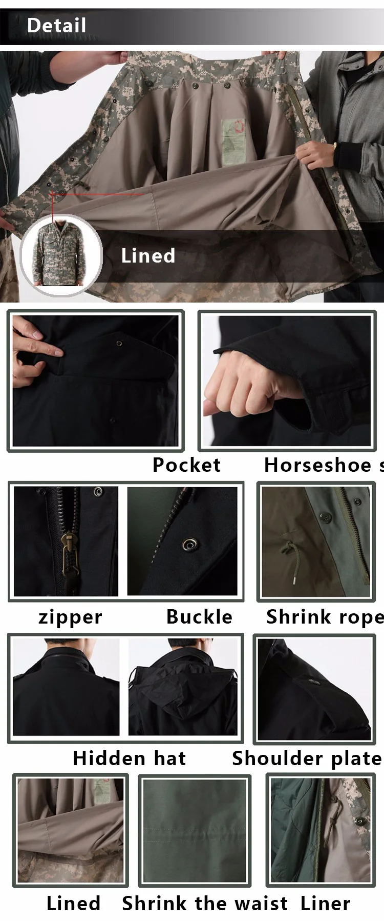 Уличная Мужская тактическая куртка армии США M65, куртка-пилот со съемной подкладкой, пальто с несколькими карманами и капюшоном