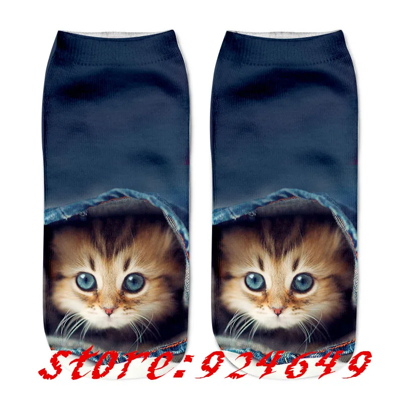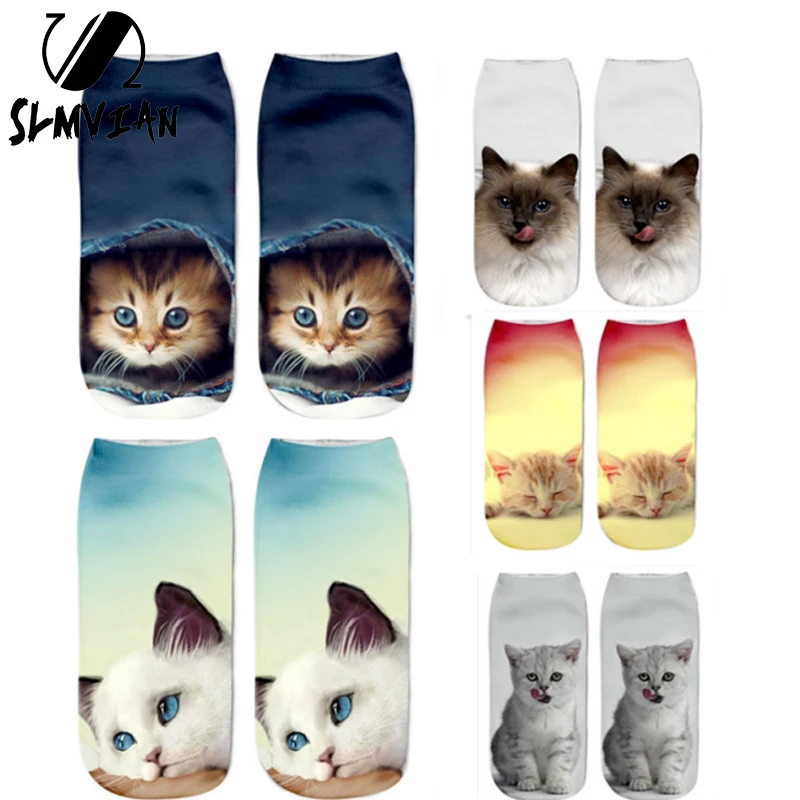 Новинка, женские носки в стиле слимвиан с 3D принтом, модные носки в стиле унисекс с рисунком кошки, женские носки, забавные низкие носки, Лидер продаж