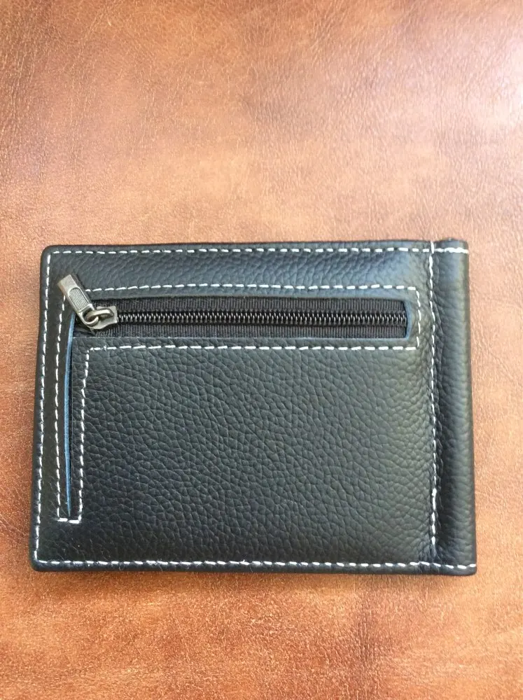 Тонкий кошелек из натуральной кожи для мужчин, мужской бумажник с зажимом для денег и кармашком для мелочи, со слотом для удостоверения личности и кредитных карт, Черный Кофейный