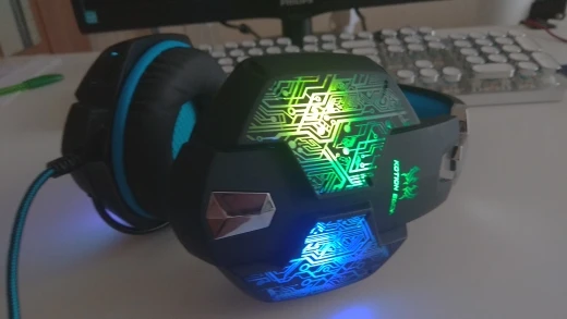 Очень долго ждал наушники, т.к. по какой-то причине они долго находились на таможне. Надувная упаковка очень порадовала, штекеры закрыты пластиком. Звук хороший, но если поставить на самый максимум, то начинает хрипеть. Кнопки регулировки громкости и отключения/включения микрофона удобно расположены. на голове сидят удобно и легко, уши не устают и не потеют. Подсветка приятная , выглядит красиво. Очень огорчает, что для подсветки нужно включать usb кабель и выключать его, если подсветка не нужна. Хотелось бы кнопку иметь под рукой. Так же от них сильно пахнет новым пластиком. От этого запаха немного болит голова. Хороший звук за свои деньги