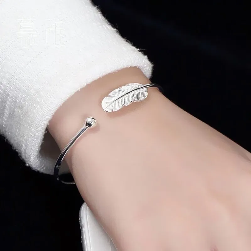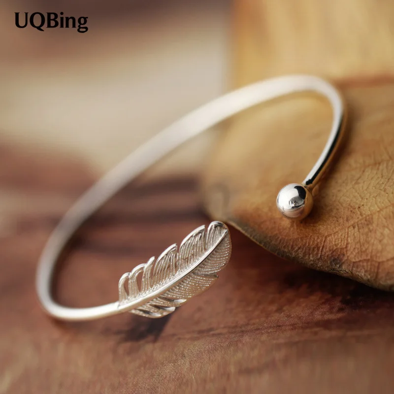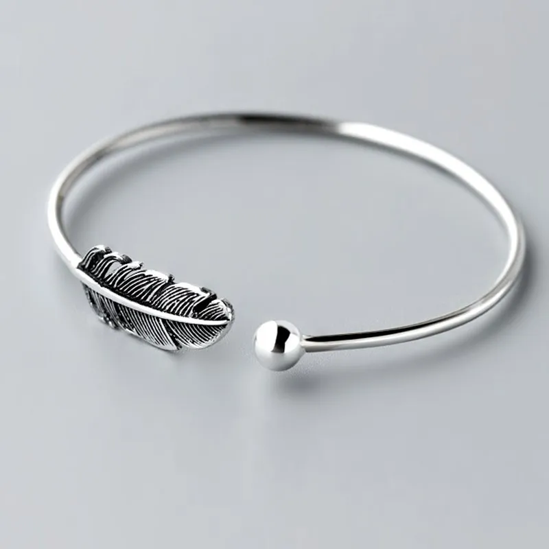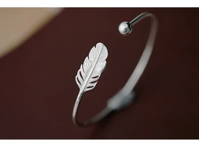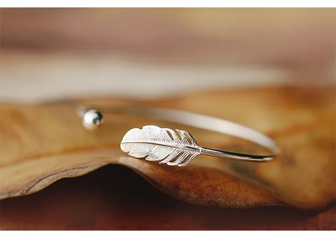 Модные красивые 925 стерлингового серебра перо манжеты браслеты и браслеты для женщин аксессуары Подарки