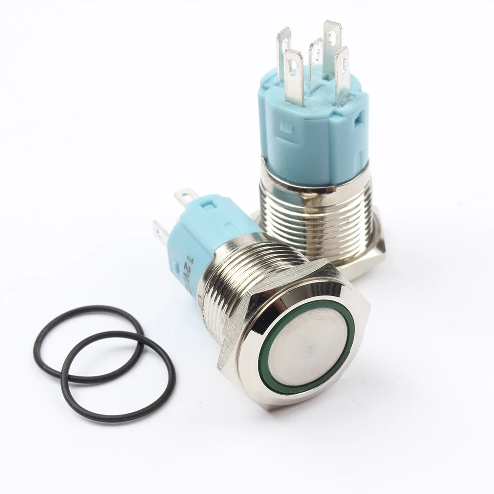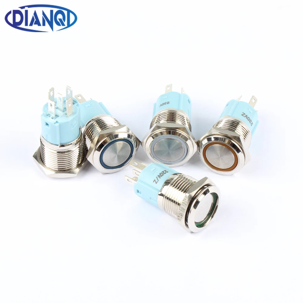 Бесплатная доставка, латунный кнопочный переключатель 16 мм, сброс плоского круглого светового кольца, моментальная Перезагрузка Блокировка с фиксацией 1NO 1NC 16HX