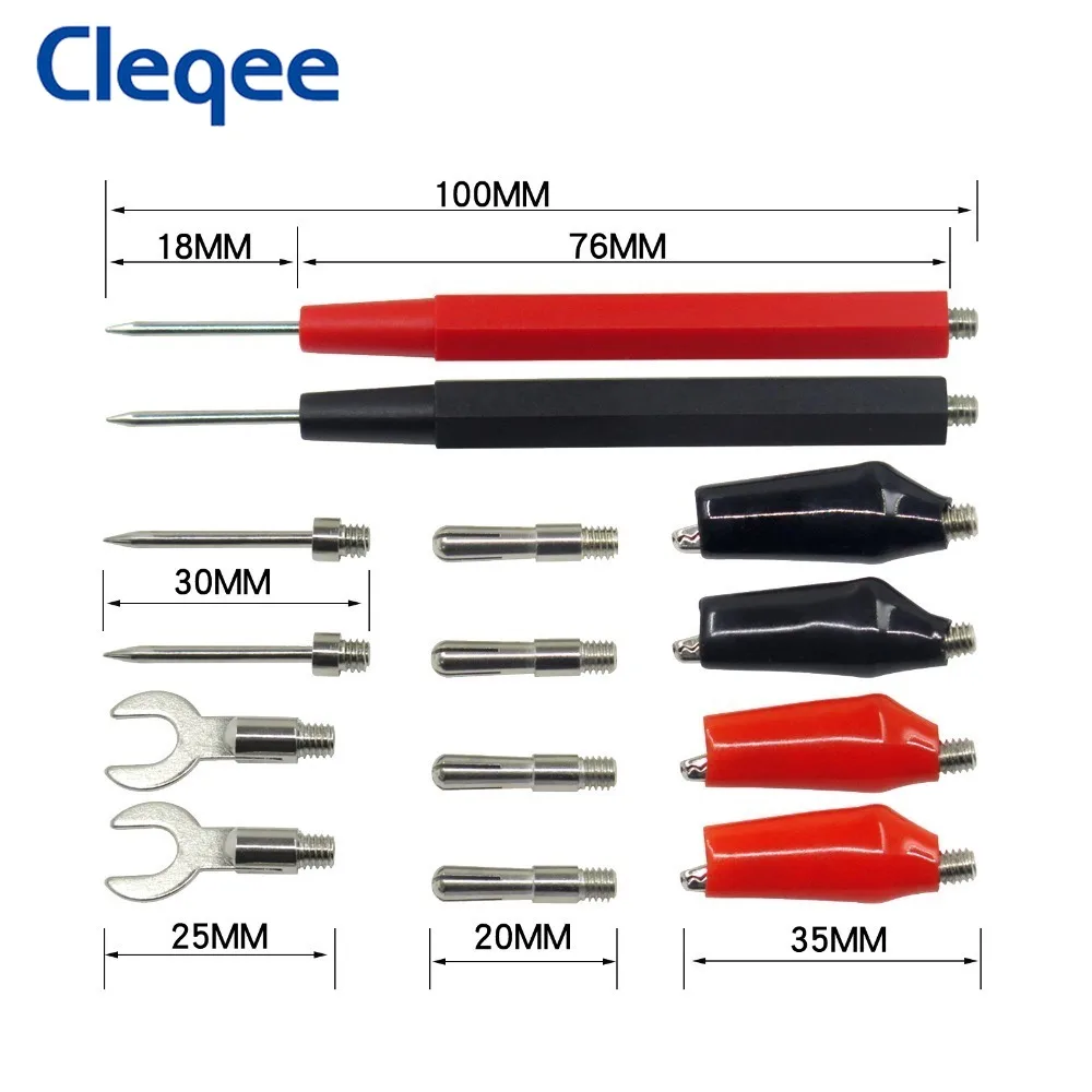Cleqee P1500 16 шт. набор тестовых щупов для мультиметра Сменные тестовые щупы + зажим крокодил + вилка лопатка + универсальный штекер банан 4 мм