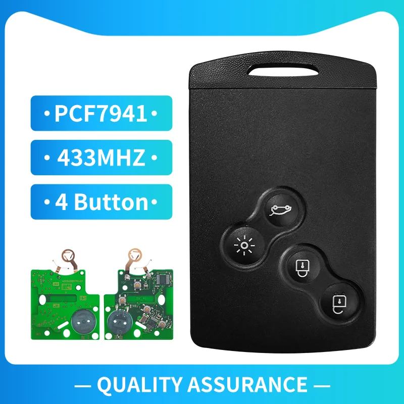 Смарт-карта XNRKEY с 4 кнопками, 433 МГц, чип PCF7941 для Renault Koleo Megane III