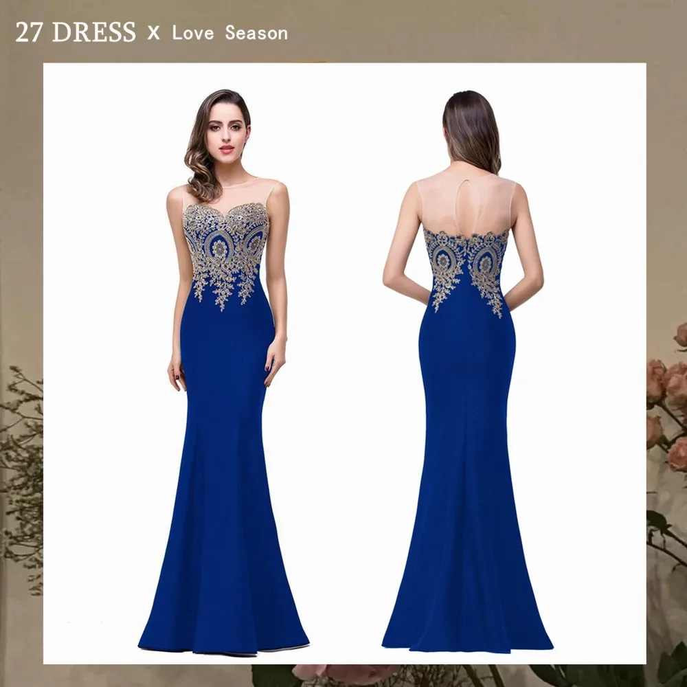 BabyonlineДлинныеПлатьяВечерниеПлатьяКоролевского Синего Цвета С Аппликаций Бальное Кружевное ПлатьеДля Подружка НевестыС ОткрытойСпиной Robe de Soiree
