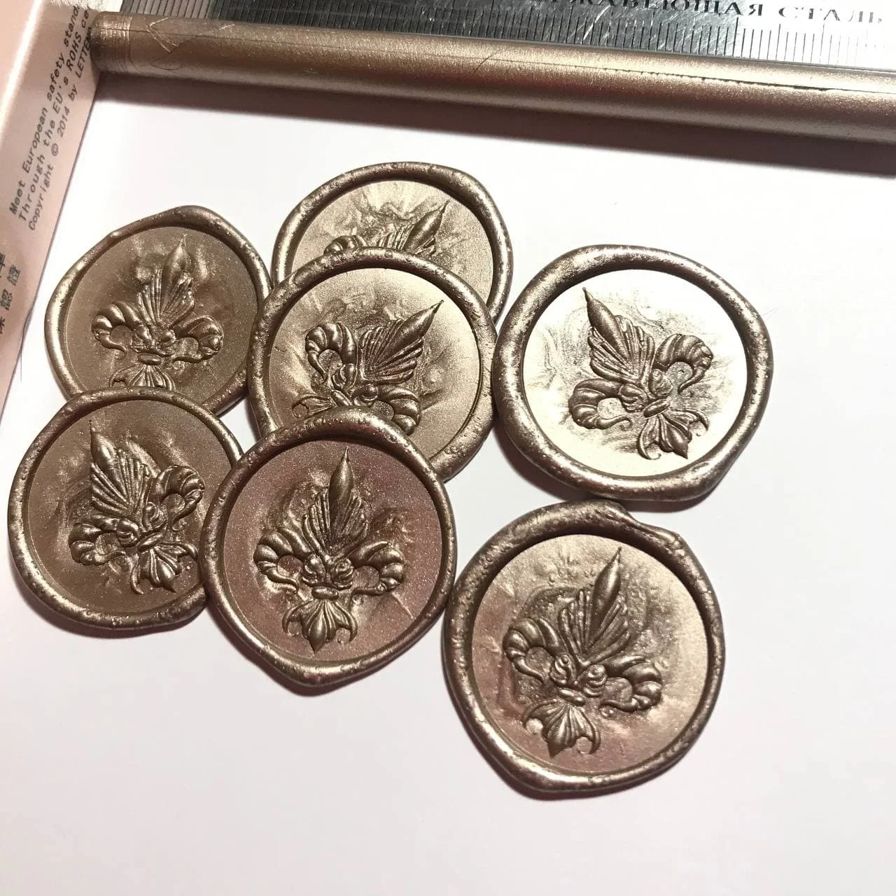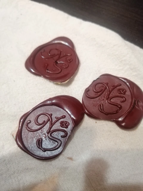 Доставка около месяца, упаковано хорошо. Товар соответствует описанию и фото. Красивый отличный воск, имеет яркое мерцание и блеск, красивый оттенок. Хорошо плавится, красивый оттиск. С одной палочки у меня получилось 7 оттисков d 2,5 см, я делала не толстые бортики (ободки оттиска). Недостаток: при плавлении выделяет неприятный запах, нехарактерный для обычного воска. В целом я довольна качеством и доставкой.