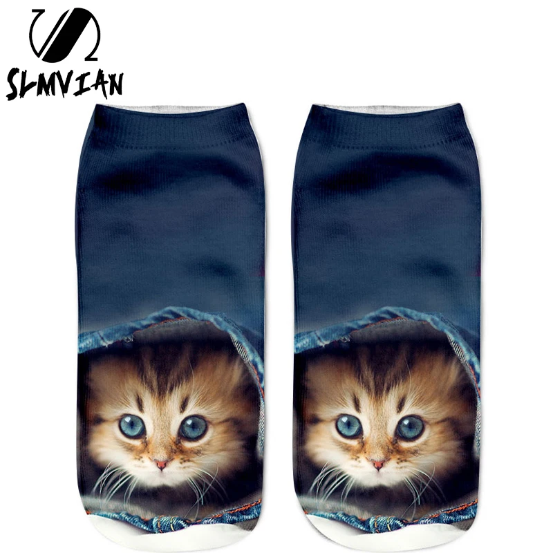 SLMVIANоптовая продажа, носки с 3D принтом кота для мужчин и женщин, милые носки унисекс, женские носки, повседневные носки-002