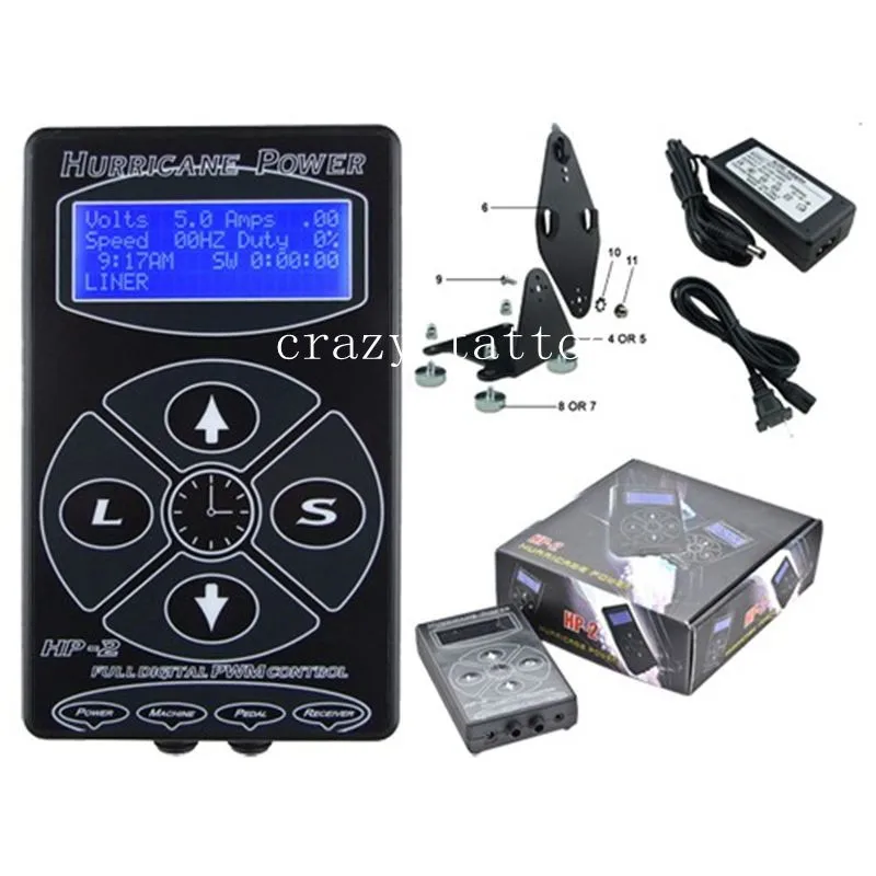 Набор электропитания Hurricane HP-2 для тату, цифровой двойной источник питания с ЖК-дисплеем, с зажимом и педалью для ног