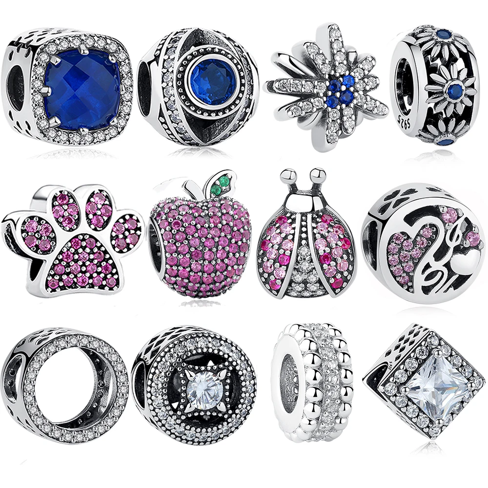 Fit Оригинальный pandora браслет стерлингового серебра 925 цветок, apple, узел Сердце, Клевер Хрустальные Бусы Подвески DIY Изготовления Ювелирных Изделий