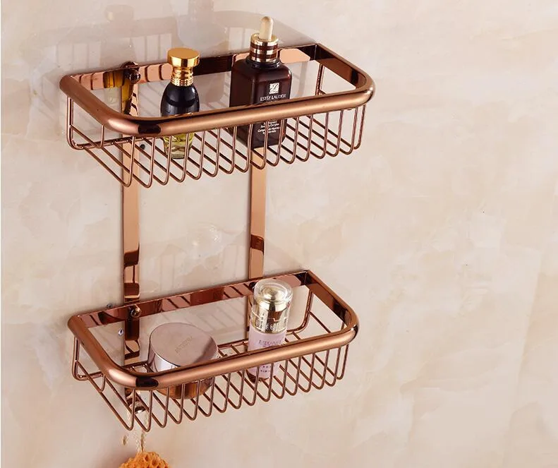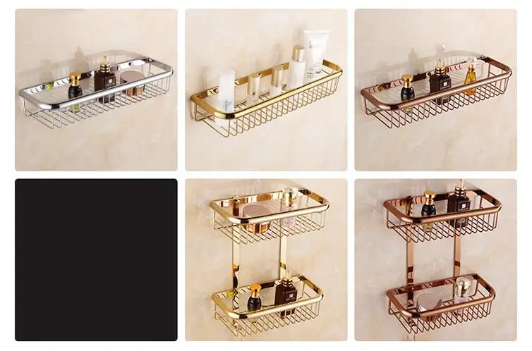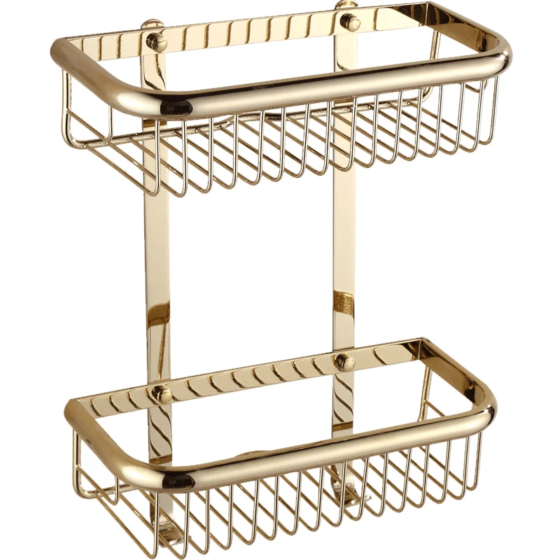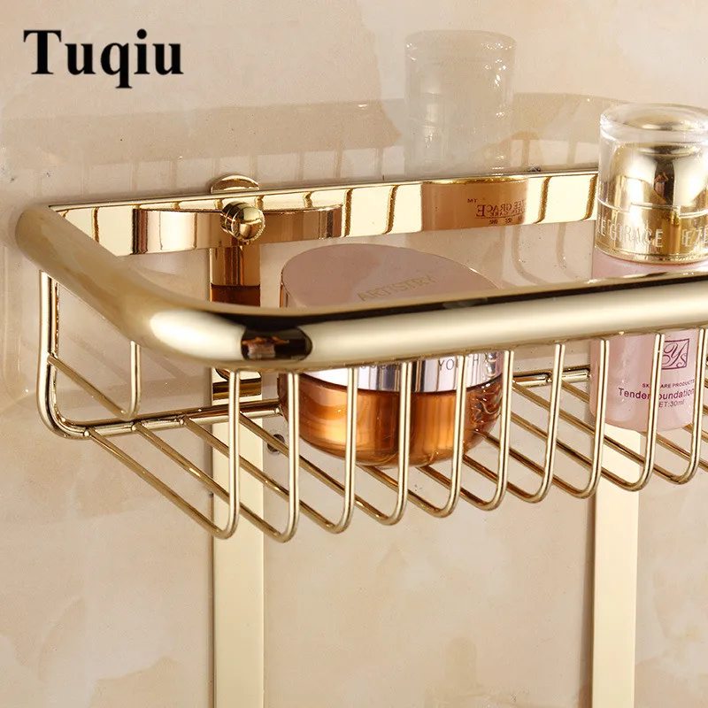 Угловая полка Tuqiu для ванной комнаты, двухуровневые латунные полки для ванной комнаты, держатель для шампуня, корзина, держатель для ванной комнаты