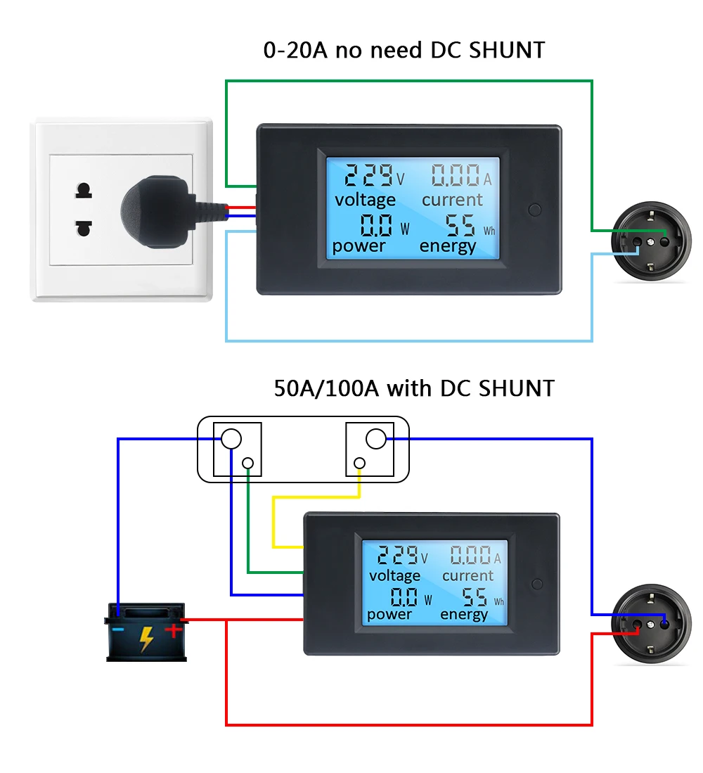 Вольтметр, амперметр с ЖК-дисплеем, 20A50A6,5 a, 100-В постоянного тока
