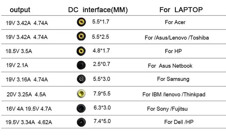 Характеристики: Вход (AC): 100-240 В, 50 - 60 ГцВыход (DC): 18,5 V 3.5A