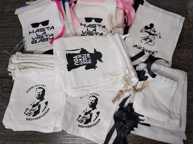 Я заказала мешочки для новогодних подарочков с соответствующей надписью , а вообще можно заказать любую надпись у продавца или логотип. Вы можете создать свой уникальный дизайн. Набор симпатичных хлопковых мешочков, которые подойдут для хранения трав, чая, разных мелочей или же в качестве подарочной упаковки. В качестве образца к заказу продавец положил парочку мешочков с другим типом завязок. Их тоже можно выбрать такие, какие понравятся. Мешочки из натуральных материалов. Я очень довольна этим приобретением , рекомендую !