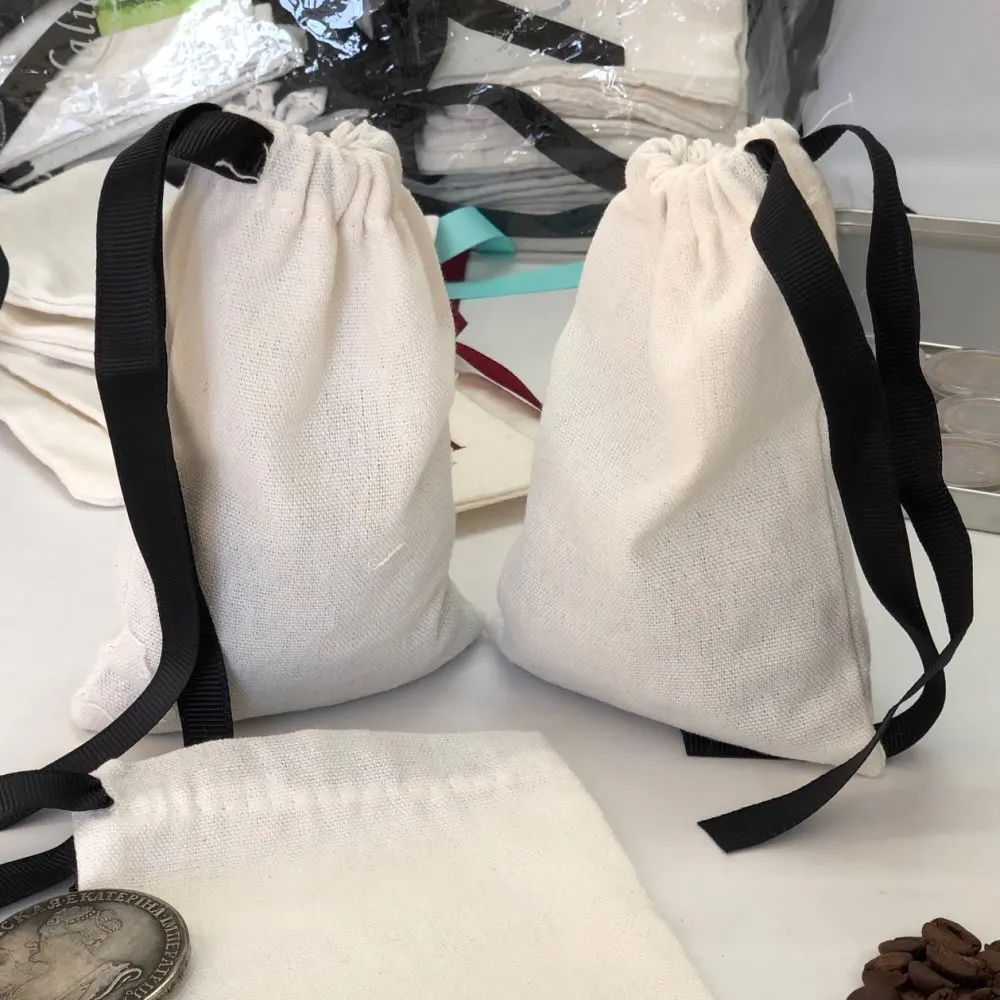 Подарочные пакеты для ювелирных изделий из хлопка с лентой 8x10 см (3 "x 4") 9x12 см 10x15 см (4 "x 6") мешок для макияжа 13x17 см, мешочки на шнурке с индивидуальным логотипом