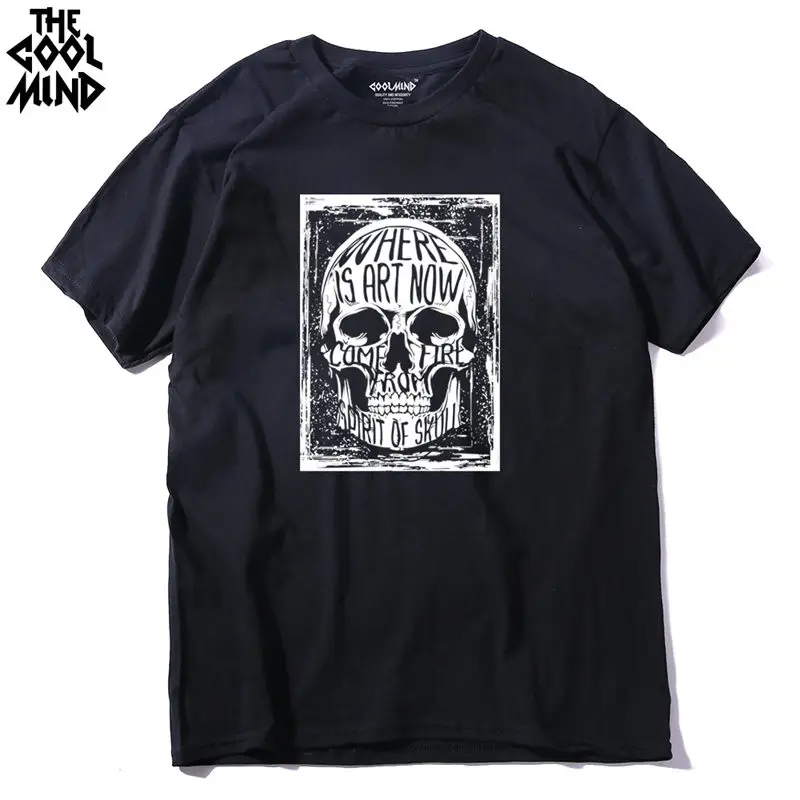 COOLMIND SK0217A, 100% хлопок, повседневная мужская футболка в стиле панк, крутая Мужская футболка с коротким рукавом и принтом черепа, футболки