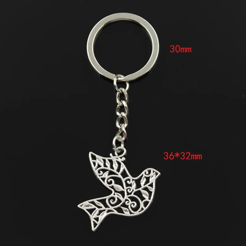 Модный брелок для ключей 30 мм, металлический брелок для ключей, ювелирные изделия, античная бронза, серебряное покрытие, полый мир, голубь, 36x32 мм, подвеска
