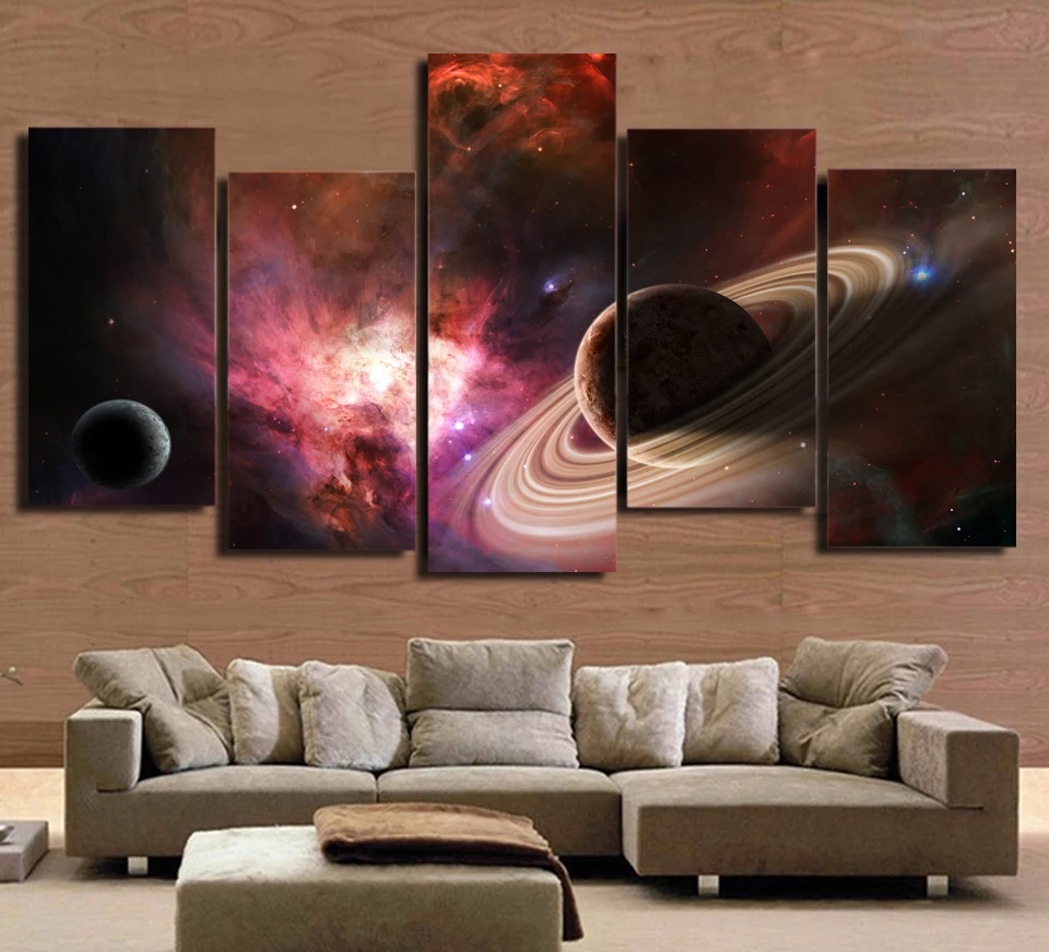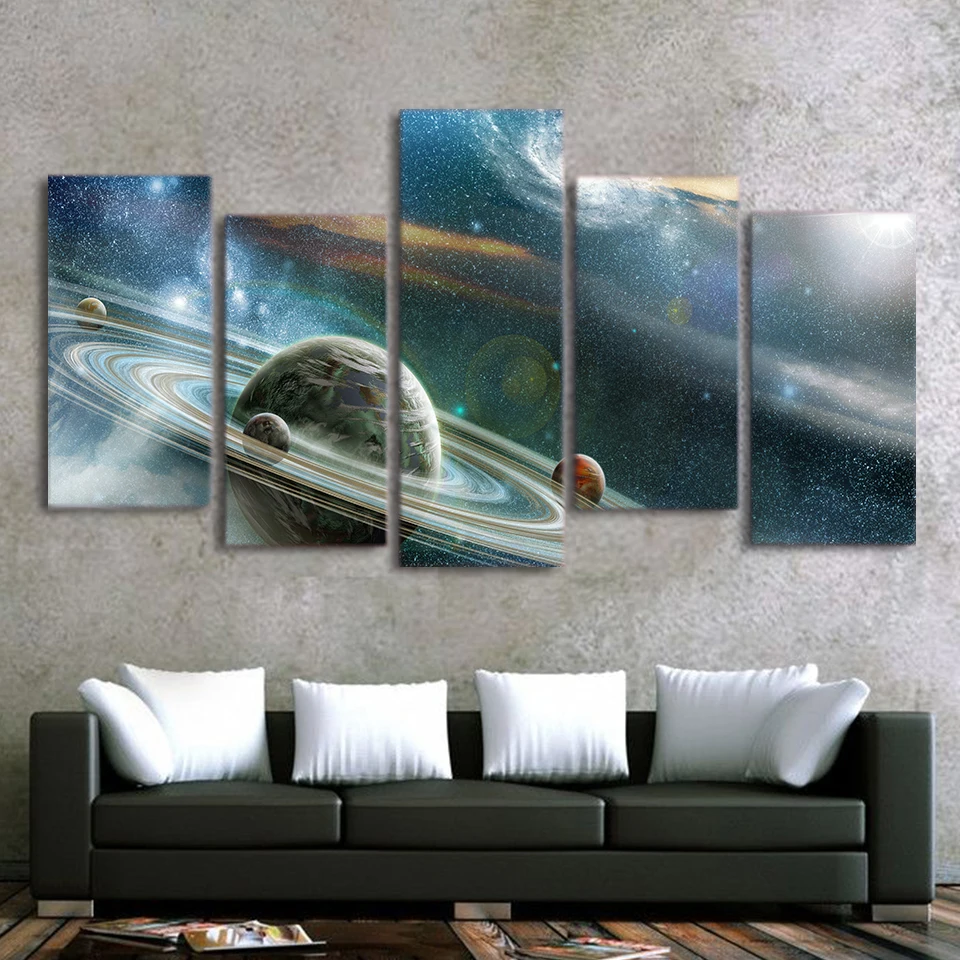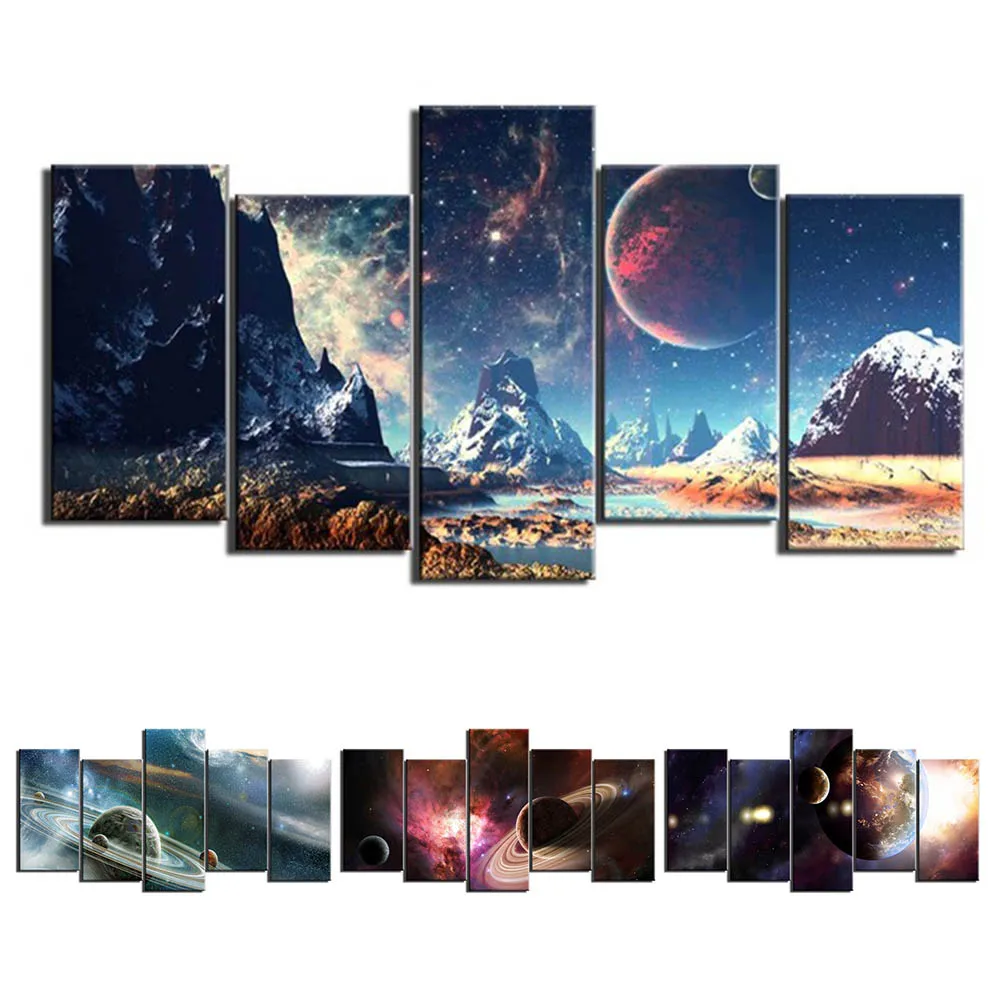 Картина с галактикой, холст с изображением туманности, снежные горы, Космический холст, набор картин с планетой и озером, 5 шт., принты, домашний декор