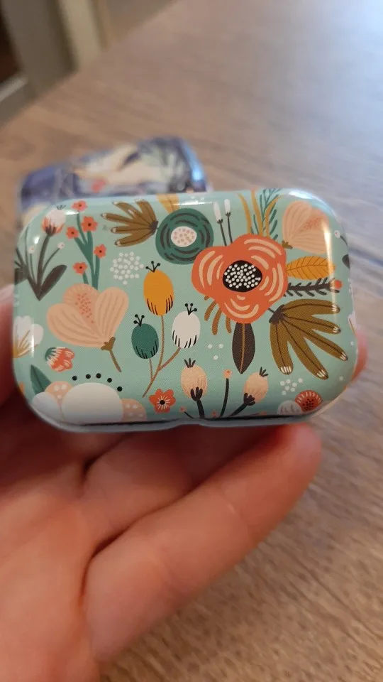 Цвета приятные. Металлическая пластина, которая держит крышку, очень тоненькая - не для частого открывания (но я беру, чтобы немного таблеток в сумке носить, и мне норм). Доставка 1,5 месяца (не отслеживалась).