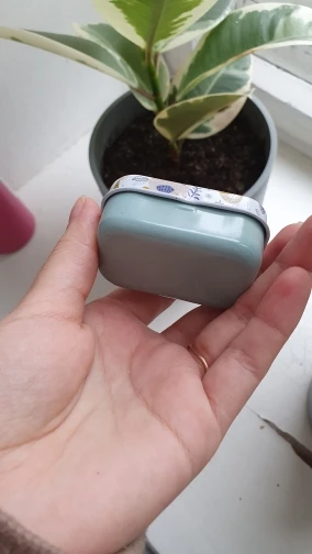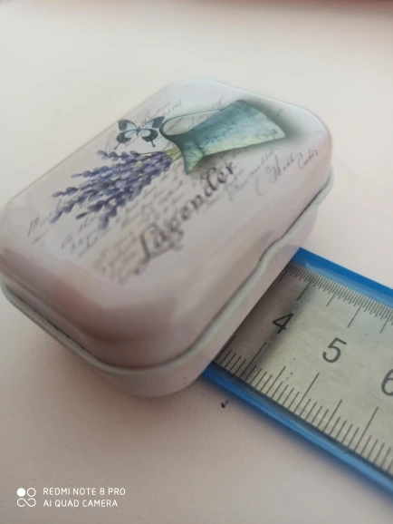 Маленькая красивая металлическая коробочка. Выполнена качественно. При доставки заказа не помялась. Товар и продавца рекомендую. Продавцу ставлю 5 звёзд. Спасибо.