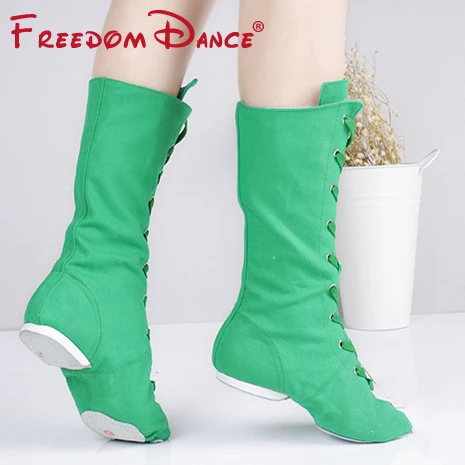 Качественные тканевые высокие сапоги для джазовых танцев, сценические танцевальные сапоги для девушек, женская обувь для выступлений, белые, зеленые тренировочные ботинки