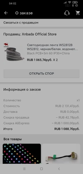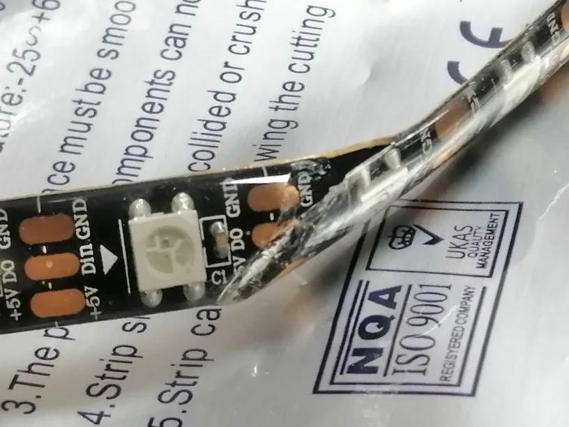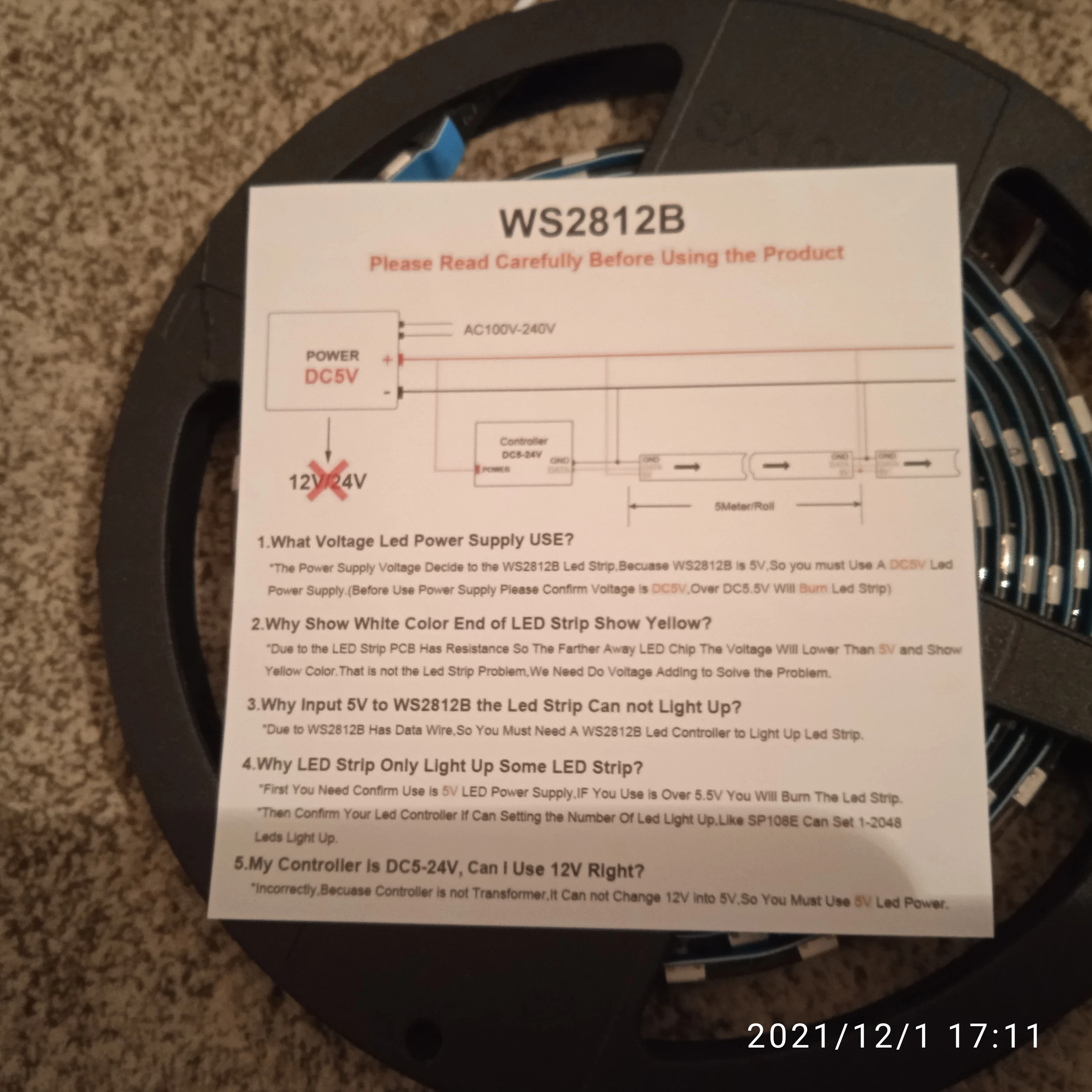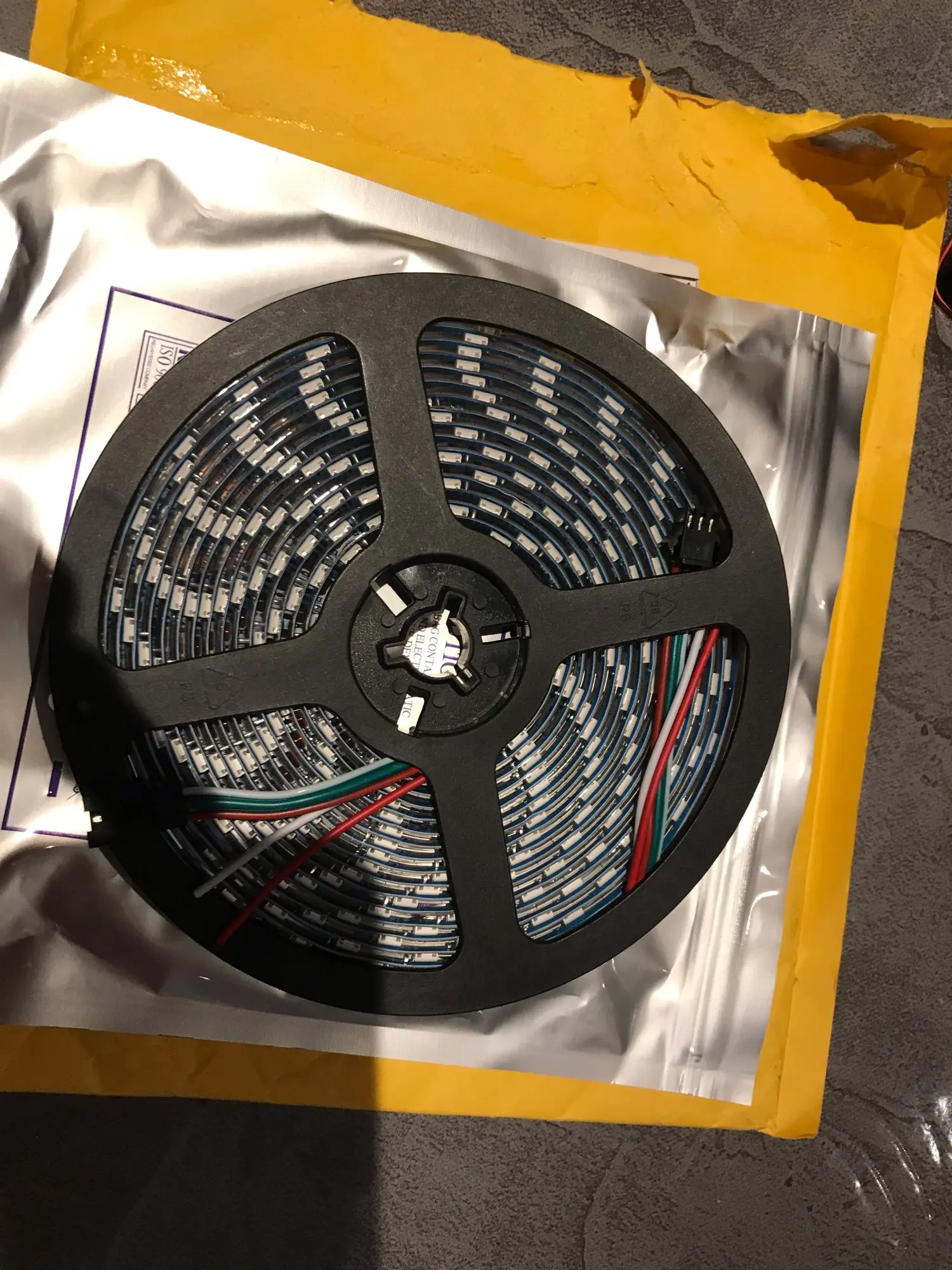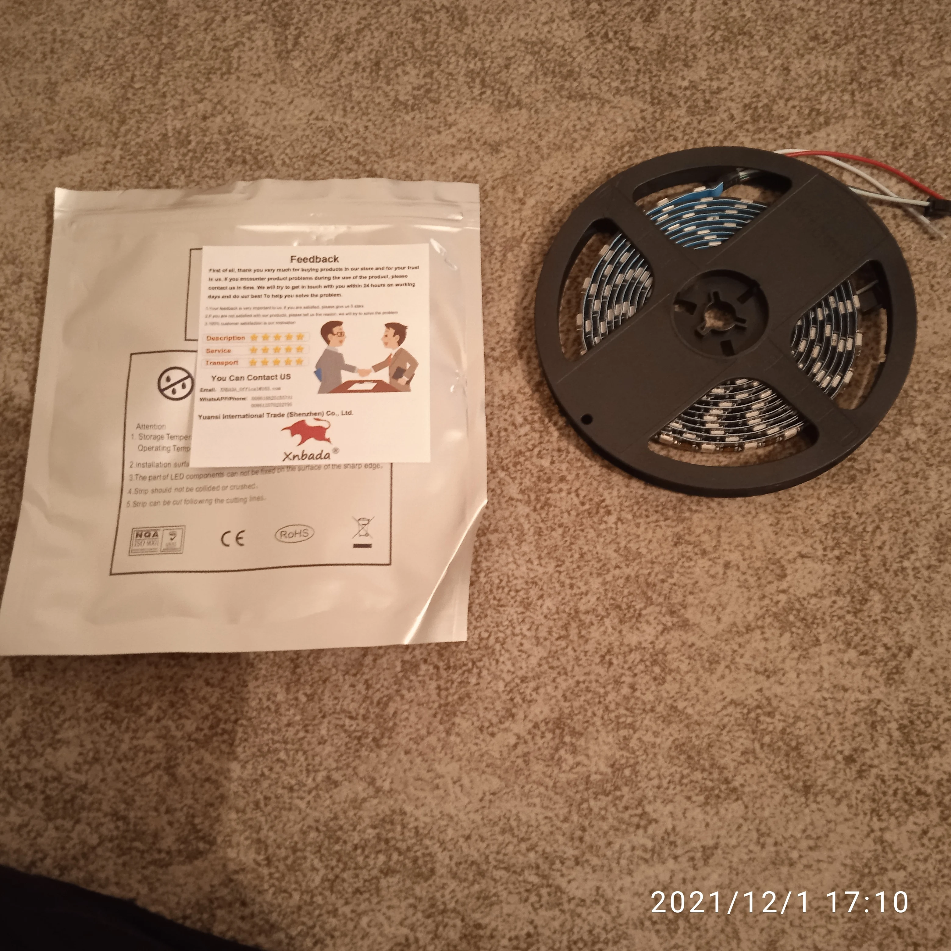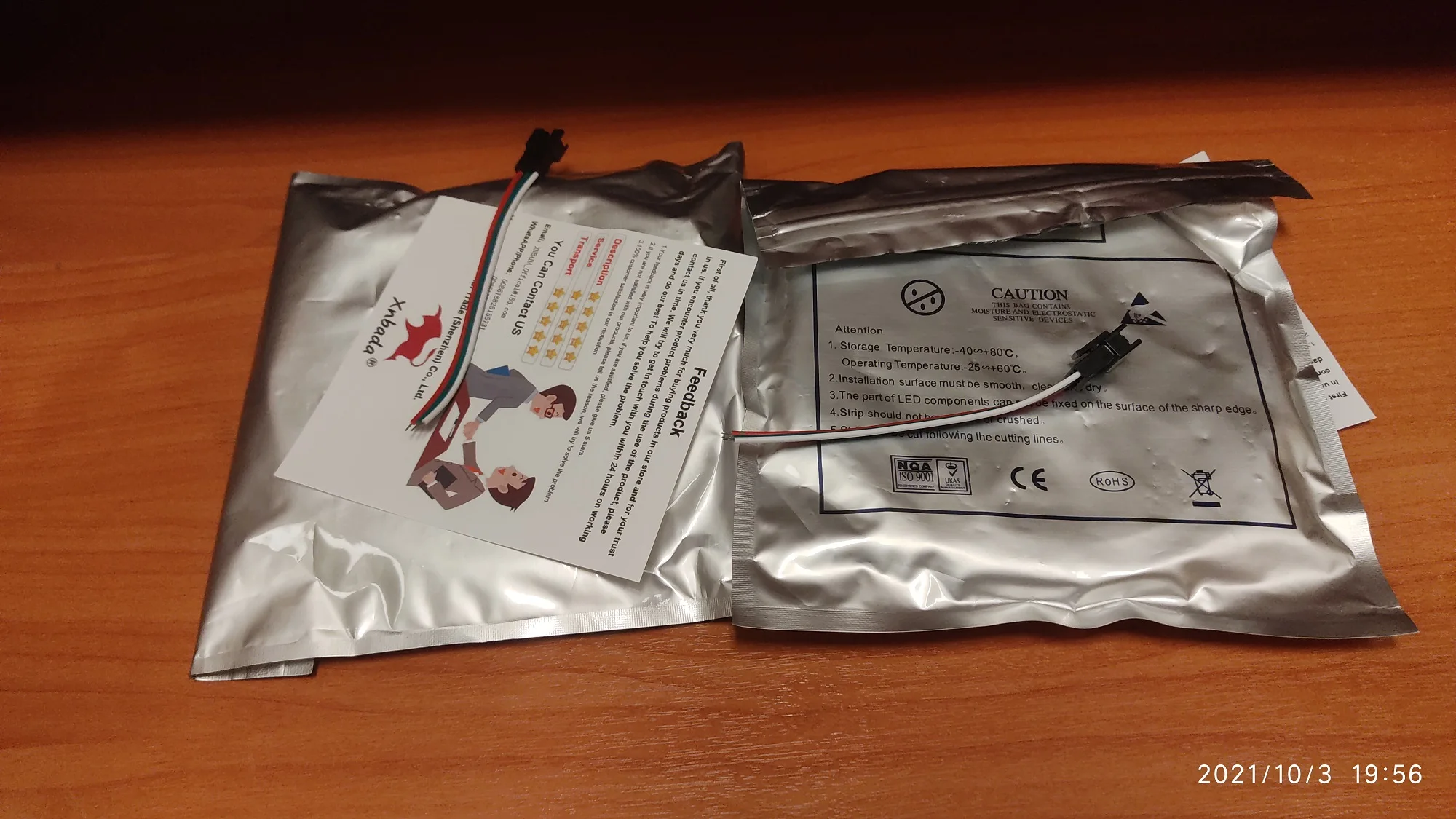 До Питера за 3 дня в постамат 5post. Товар был отправлен в бумажном конверте с пупырчатой прослойкой, также сама лента была на бобине и лежала в заводском пакете с антистатическим покрытием. На деле лента неплохая, но если включить все диоды в режиме белого на полной яркости, то видно что до последних диодов уже доходит меньше напряжения (происходит просадка по напруге), поэтому стоит подвести отдельную линию питания в конец ленты, чтобы диоды горели равномерно.