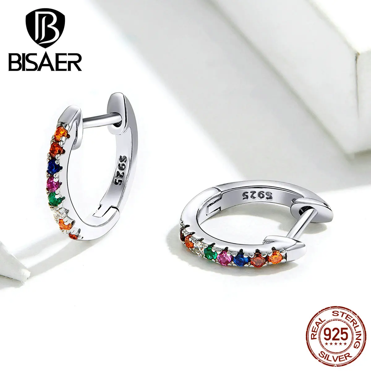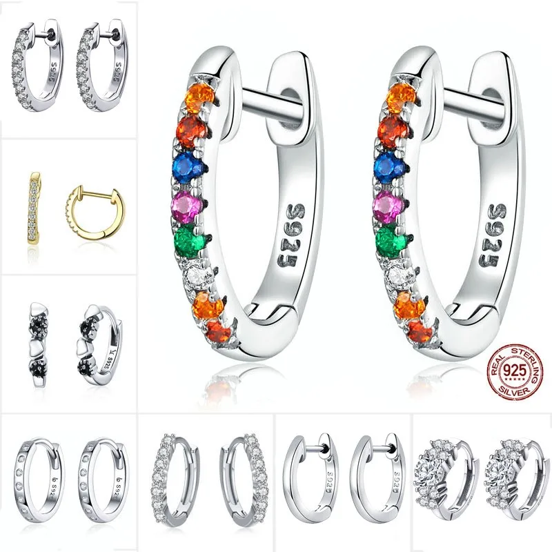 Женские круглые серьги-кольца из серебра 925 пробы с фианитами