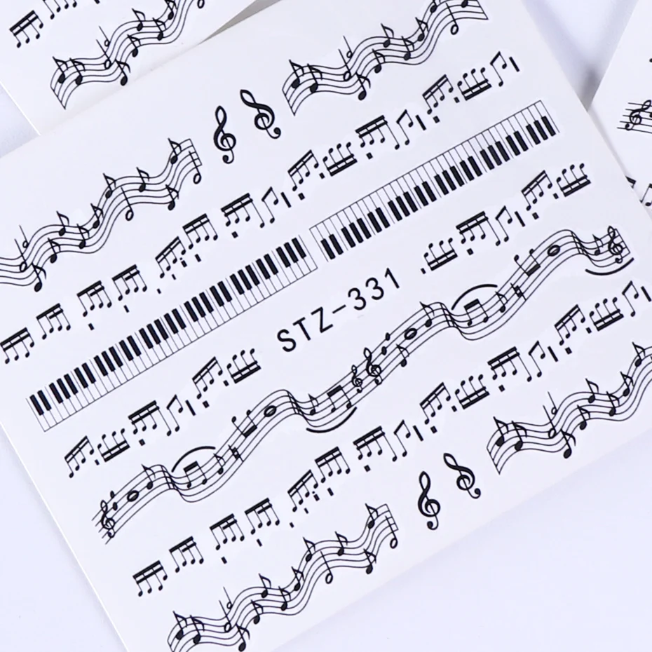 Переводные наклейки для ногтей, 1 лист, музыкальные ноты, дизайн, Нейл-арт, водные переводные наклейки, украшения для маникюра, слайдер, фольга, обертывания, TRSTZ-331