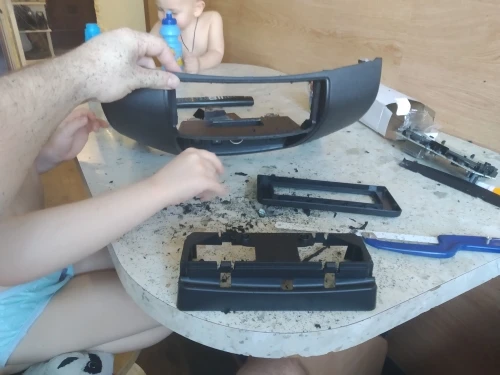 Подтачивал кнопки, так же ставил корпус на хомуты из нутри, пришлось снимать магнитолу, защёлки не держат вообще.