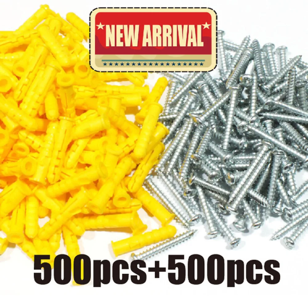 Оптовая продажа, высококачественные ребристые пластиковые анкеры с винтами, комплект 6x30 мм, 500 шт. в комплекте, Расширительная Труба, настенная вилка