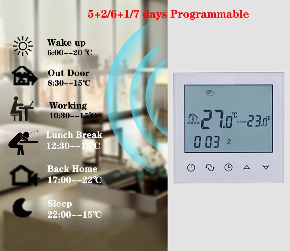 TDS21 электрический подогрев пола сенсорный экран термостат теплого пола система отопления терморегулятор 220 В регулятор температуры