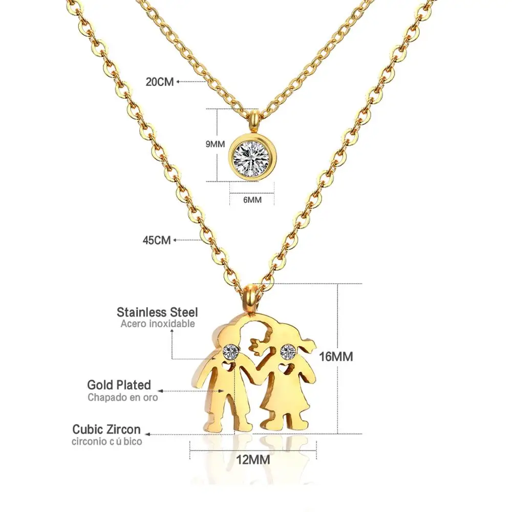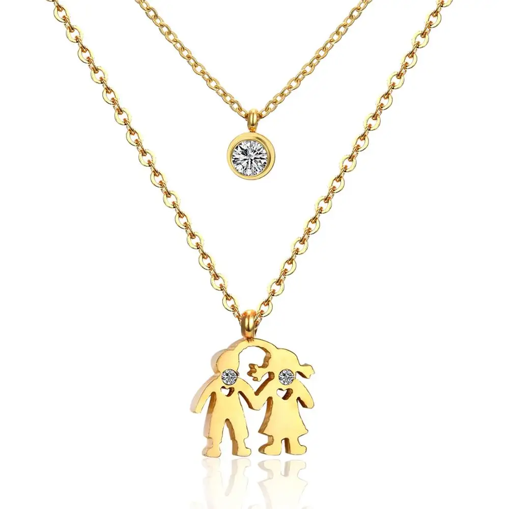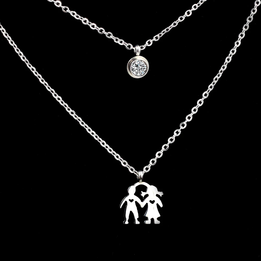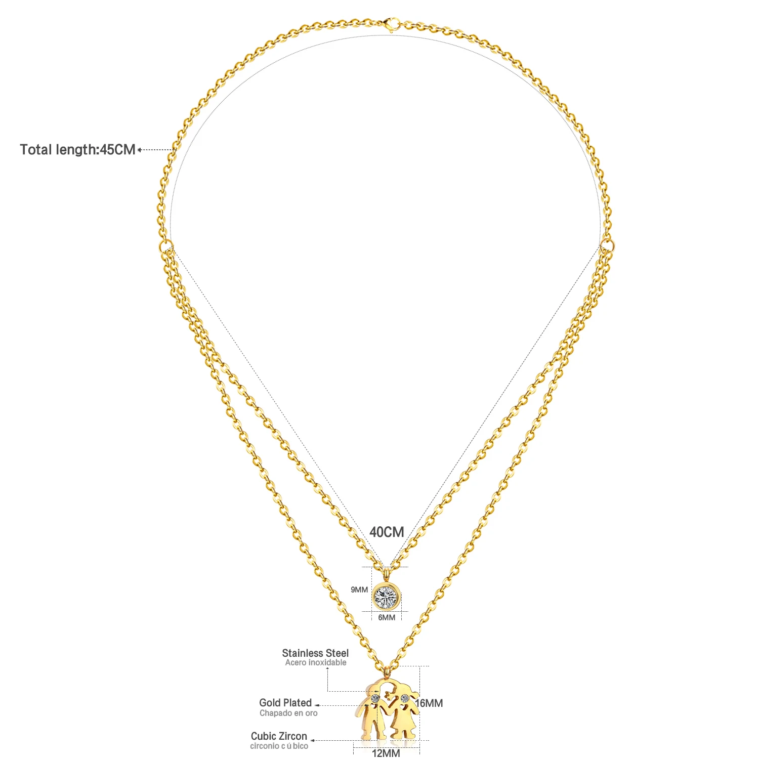 Ожерелье LUXUKISSKIDS с двойной цепью, ожерелье из нержавеющей стали 316L с круглым кулоном с кристаллами для мальчиков и девочек, хороший подарок