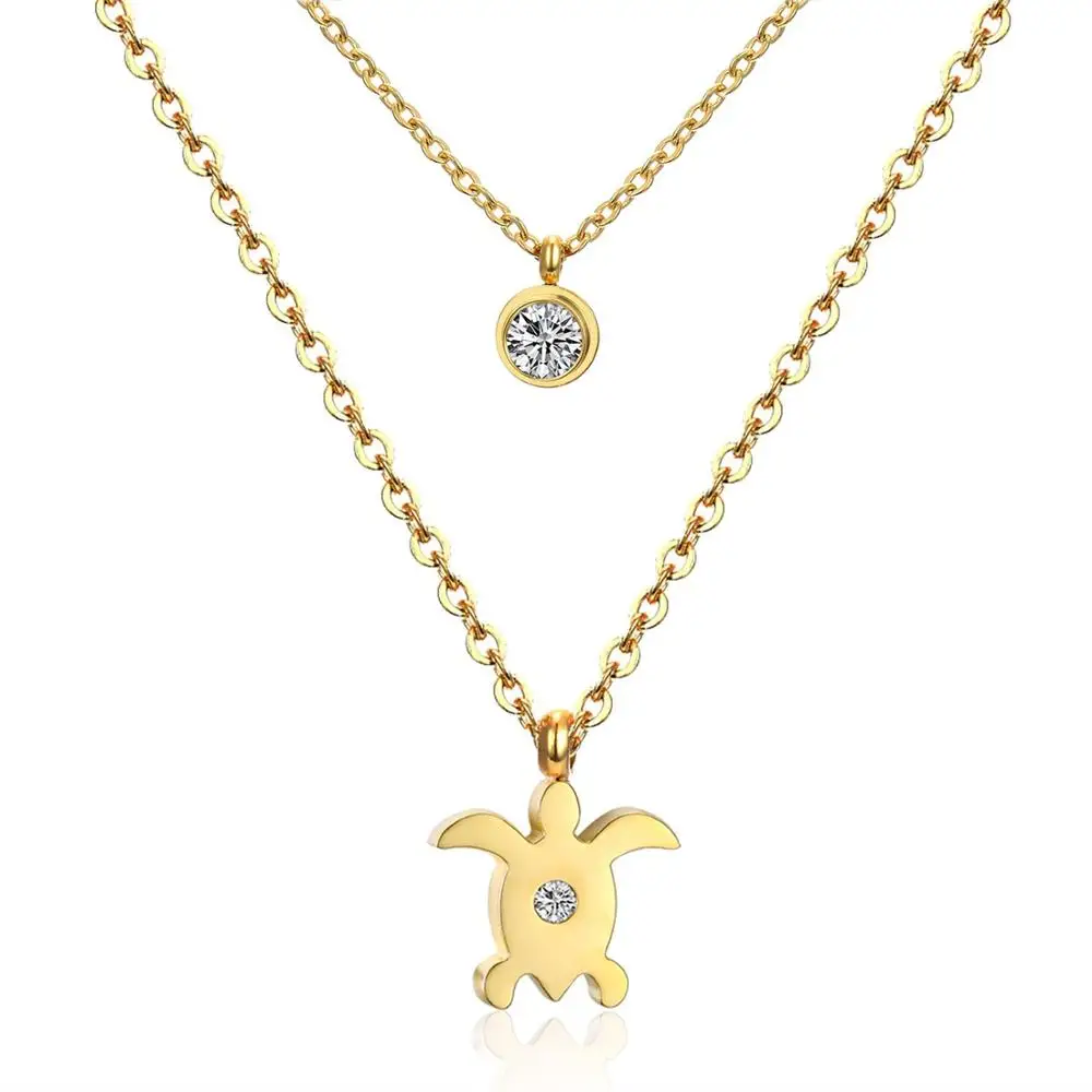 Ожерелье LUXUKISSKIDS с двойной цепочкой, ожерелье с подвеской в виде морских черепах, ожерелье из нержавеющей стали, ожерелье для женщин и мужчин