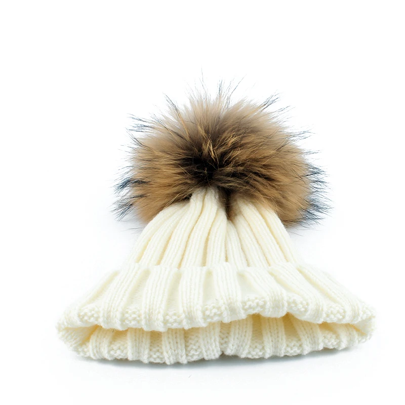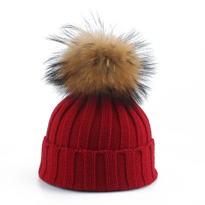 Шапка Вязаная Детская зимняя, с большим меховым помпоном, для мальчиков и девочек, 2021