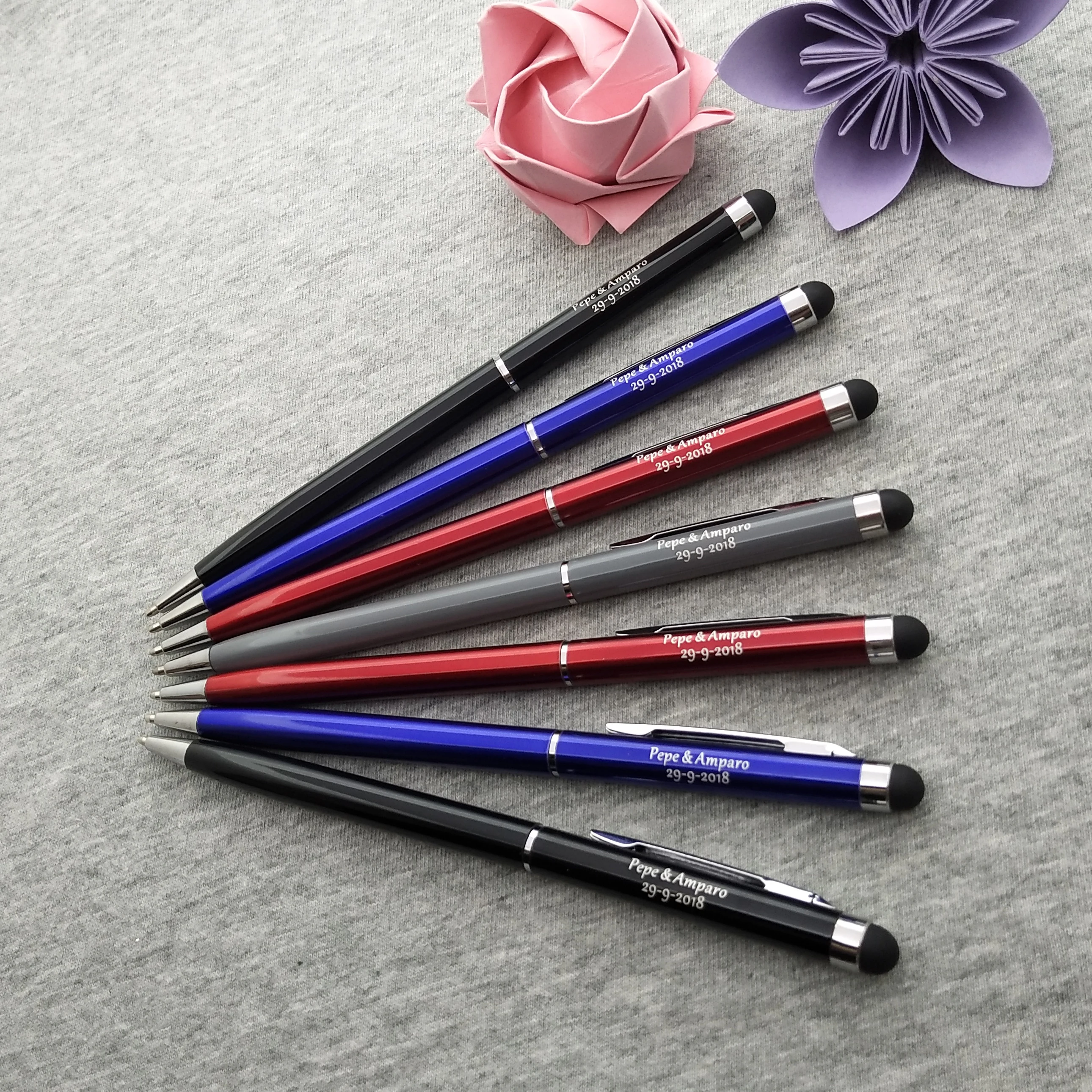 60 шт. в партии, персонализированные свадебные настольные центральный смартфон, трогательные ручки, печать на заказ с вашей датой свадьбы и желаниями