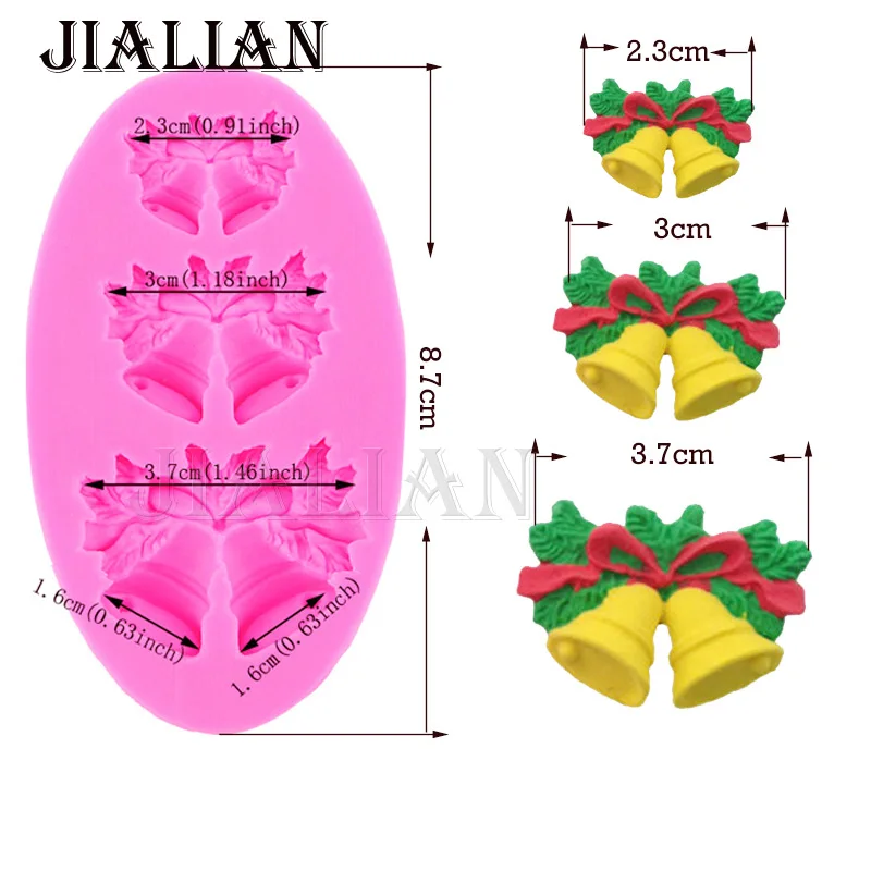 3 отверстия рождественские колокольчики шоколадные конфеты инструменты для украшения печенья и тортов DIY выпечки помадки силиконовые формы Gumpaste конфеты T0469