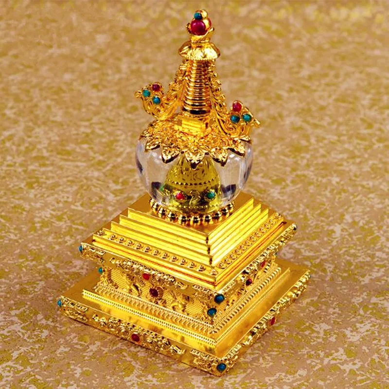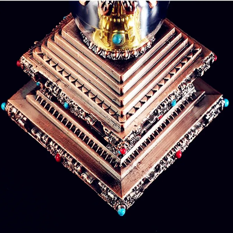 Древняя Фантастическая тибетская буддийская ступа, медная пагода Бодхи, 14 см, Золотое тонкое мастерство, башня Будды украшение