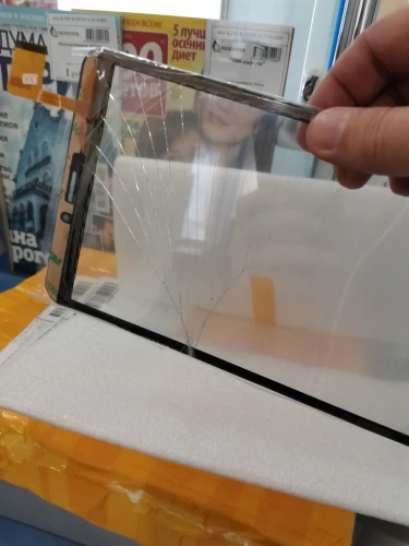 Сел почти, как родной. До этого брал он был толще и после приклейки был на 0,5 мм выше корпуса планшета, а этот наоборот ниже на 0,5 мм. Лента наклеена только по верху и по низу Тача, сбоку либо на скотч или на клей садить придётся. Упакован очень хорошо, хоть и коробка неказистая. До Калининграда шёл 25 дней.