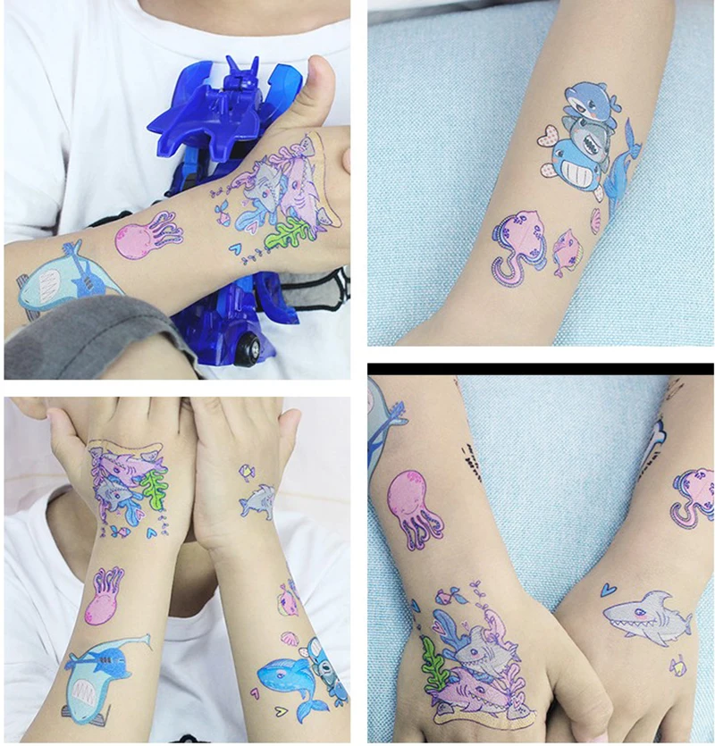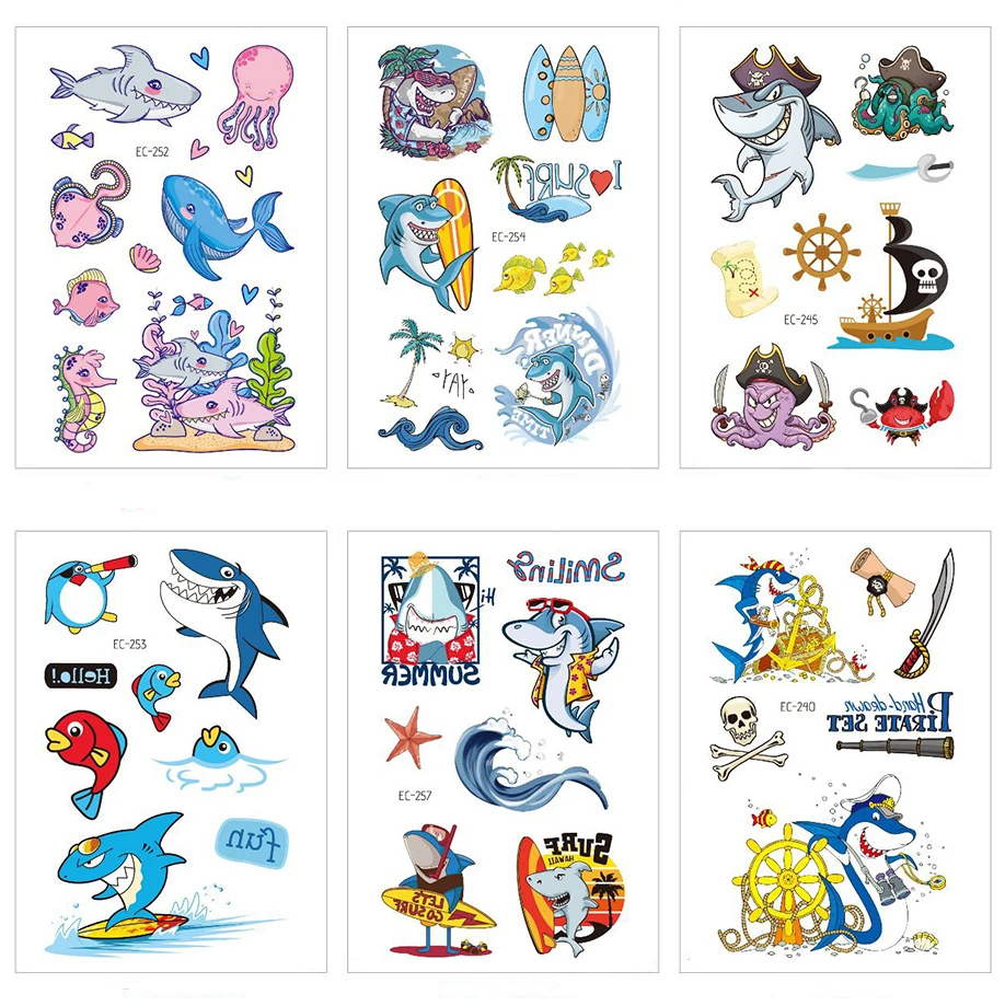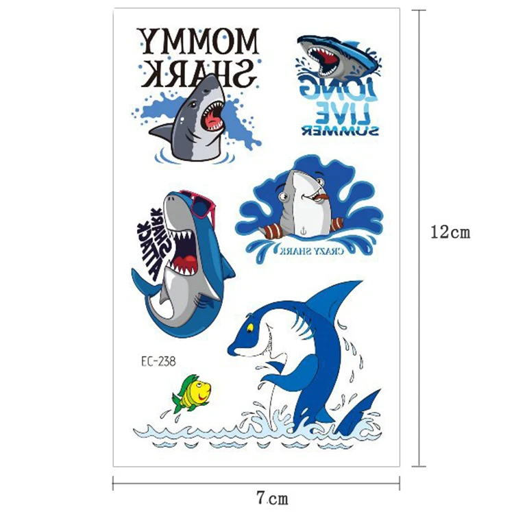 12x7 см Водонепроницаемая Татуировка Акула Наклейка милый и интересный океан вечерние Детская Наклейка
