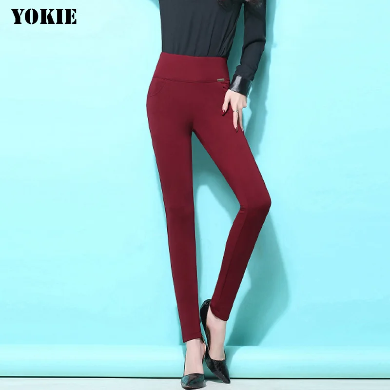 Женские обтягивающие брюки-карандаш, зимние теплые эластичные штаны с высокой талией, S-6XL, 2018, размера плюс