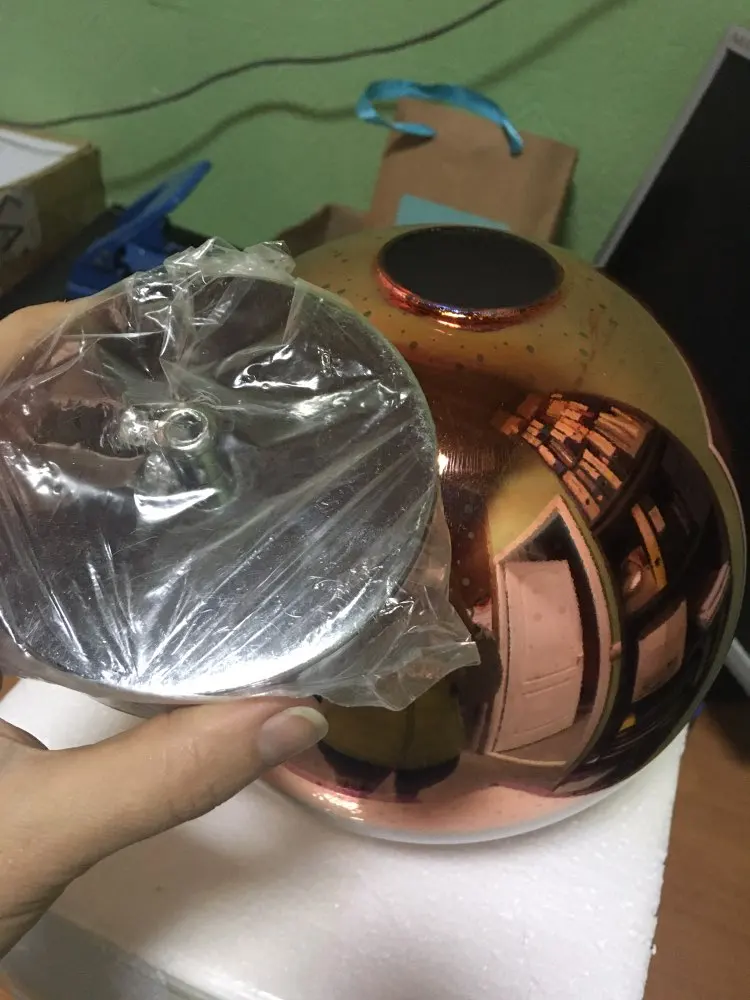 Я впечатлена упаковкой! Стеклянные шары пришли в пенопласте , полностью целые. К примеру получила другой товар от другого поставщика металический абажур был помят. А этот целый! Спасибо! Все как на картинке. Немного расстроило цвет шнура и цоколя серебро. А заказывала медь. За это сняла звезду. В остальном светильники шикарные ! Поставщик общался. По России отслеживался. Принесли домой.