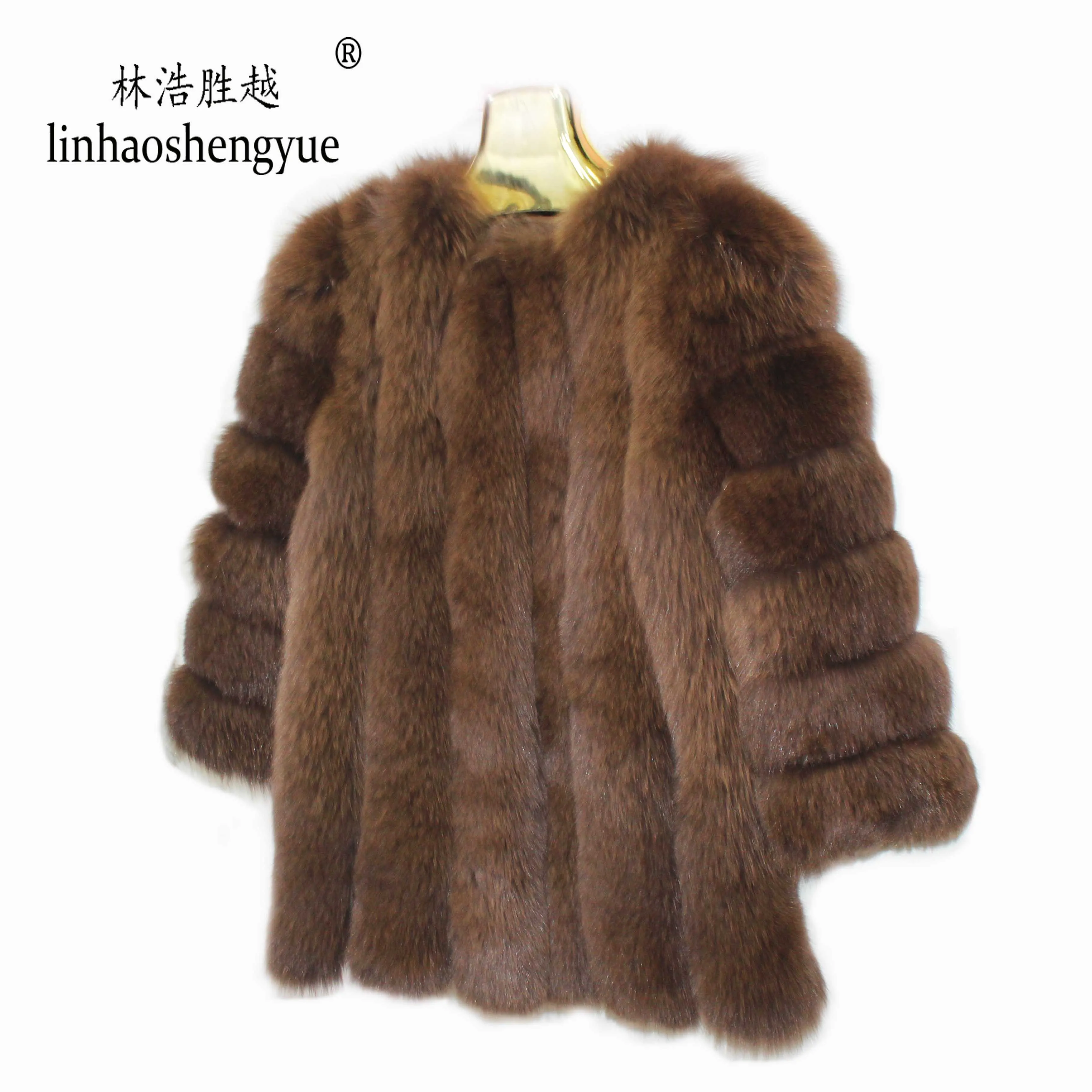 Шуба Linhaoshengyue из натурального Лисьего меха, длиной 70 см, зимняя женская шуба из натурального Лисьего меха лисьего меха