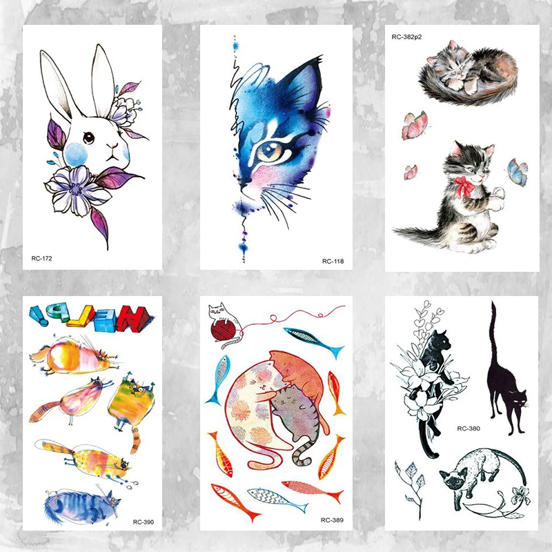 10x6 см, новая Временная модная Татуировка, милый кот и кролик