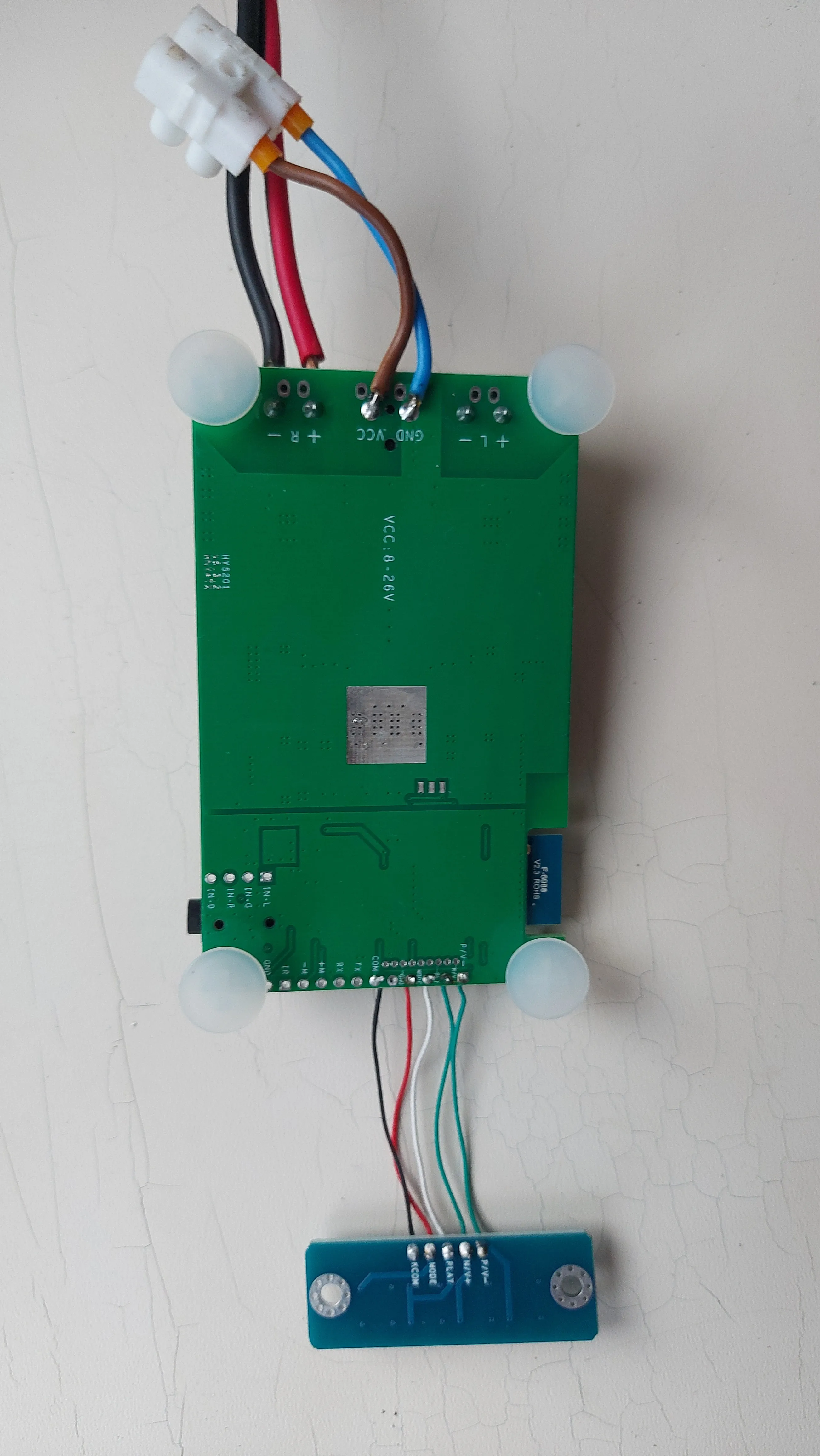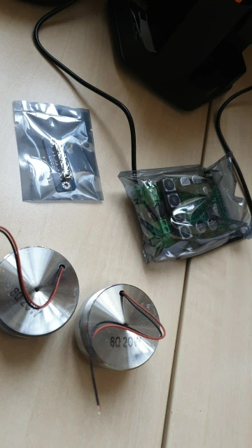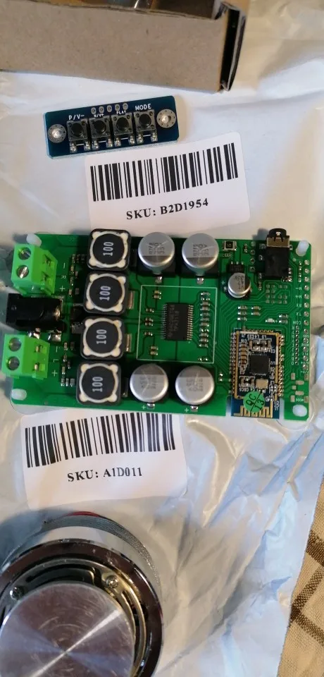 Получил по экспресс доставке довольно быстро. Всё заявленное в описании было в комплекте. Упаковано хорошо. Работает. С трудом в других магазинах нашёл схему подключения маленькой платки с кнопками. Соединяется она оди-в-один кроме общего провода, который припаивается с пропуском одного контакта. В прочем при подключении по bluetooth эту платку можно вообще не использовать. В сети есть видео, где динамик прижимается при помощи куска канализационной трубы и тенисного мячика. У меня так не получилось - от вибрации динмак насинает ползти и всё разваливатся.