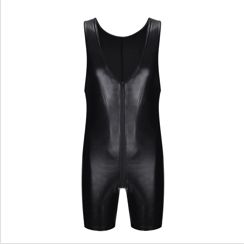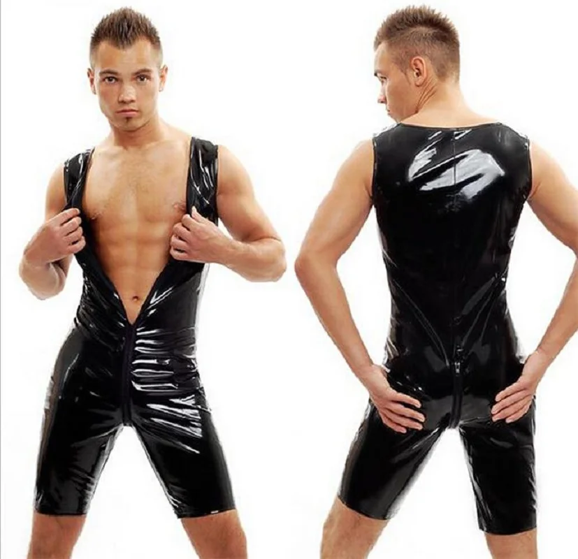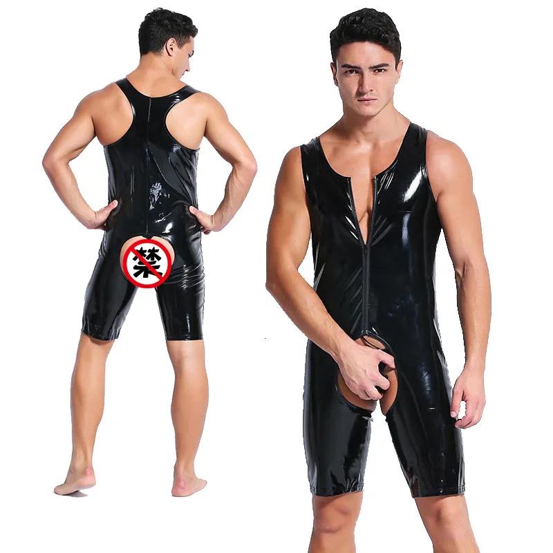 Боди мужское из ПВХ и кожи, комбинезон с молнией до промежности, фетиш, латексная Клубная одежда