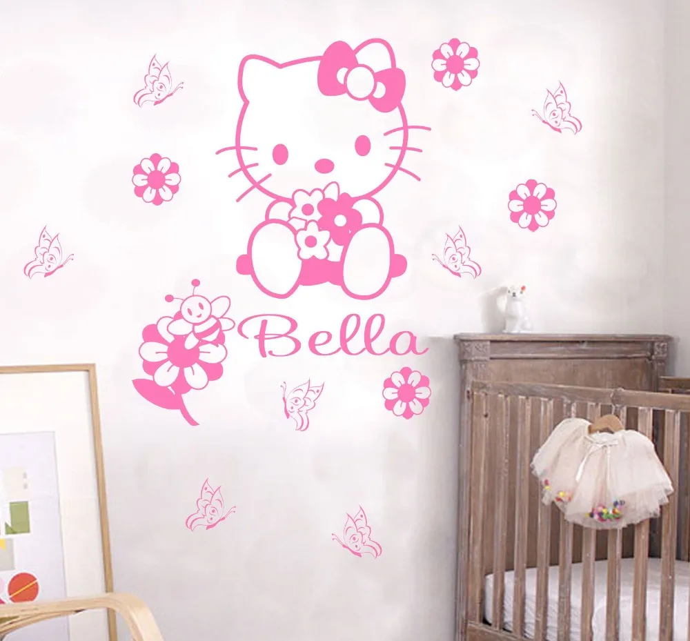 Персональное имя Hello Kitty наклейка на стену Детская комната Наклейка на стену Пользовательские слова наклейка для девочек Детская комната Y-197